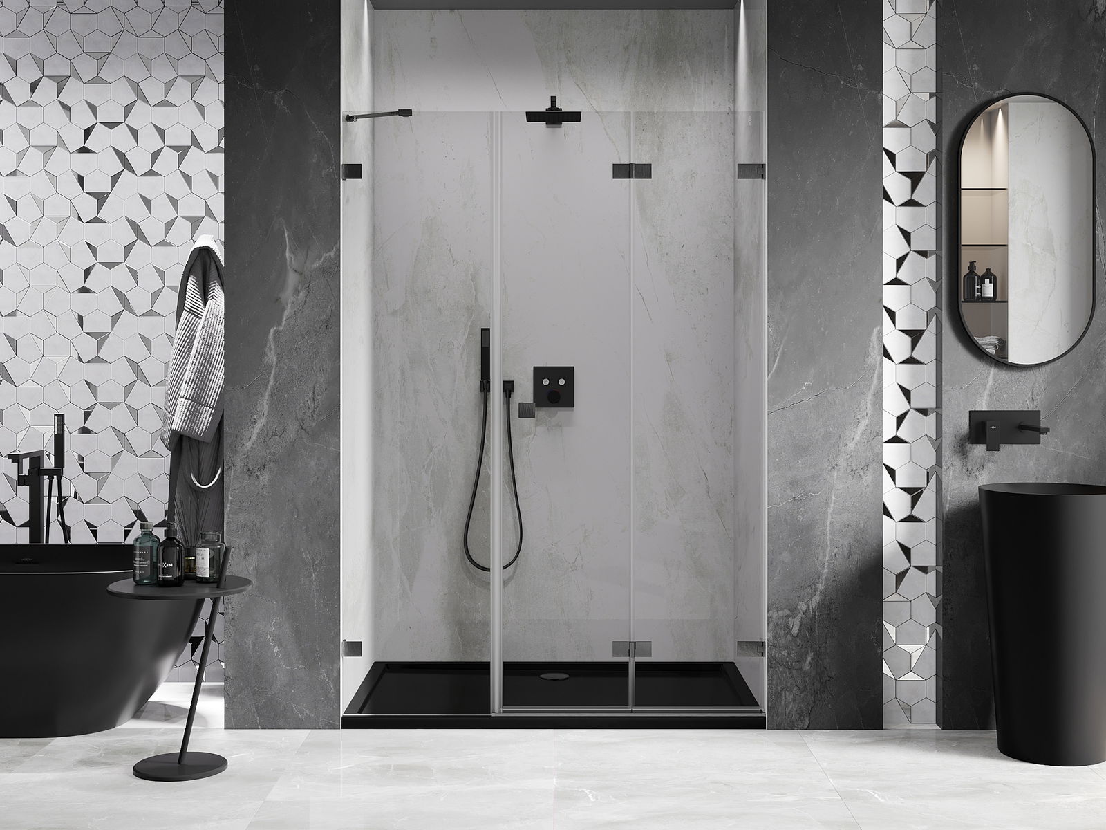 Możliwość składania drzwi, zarówno do zewnątrz, jak i do wewnątrz, pozwala uzyskać więcej przestrzeni podczas niekorzystania z prysznica. Jest to idealne rozwiązanie do mniejszych łazienek, maksymalnie wykorzystujące dostępną powierzchnię.