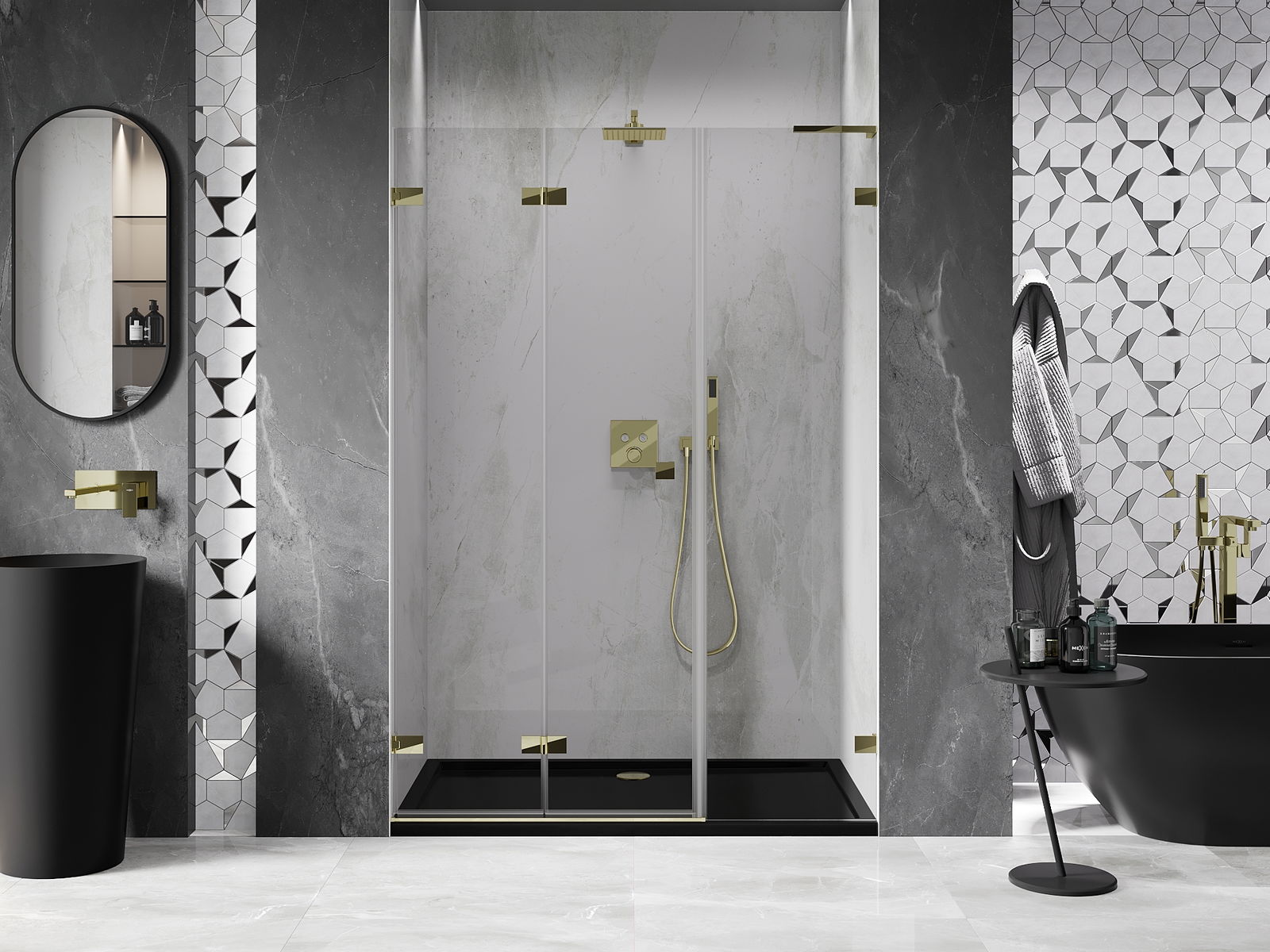Mexen Lunar-F L drzwi prysznicowe składane lewe 135 cm, transparent, złote - 836SL-135-050-50-00-L
