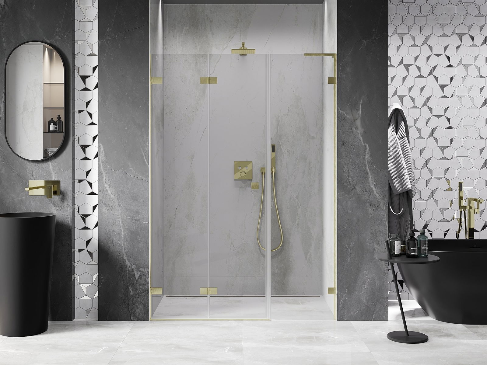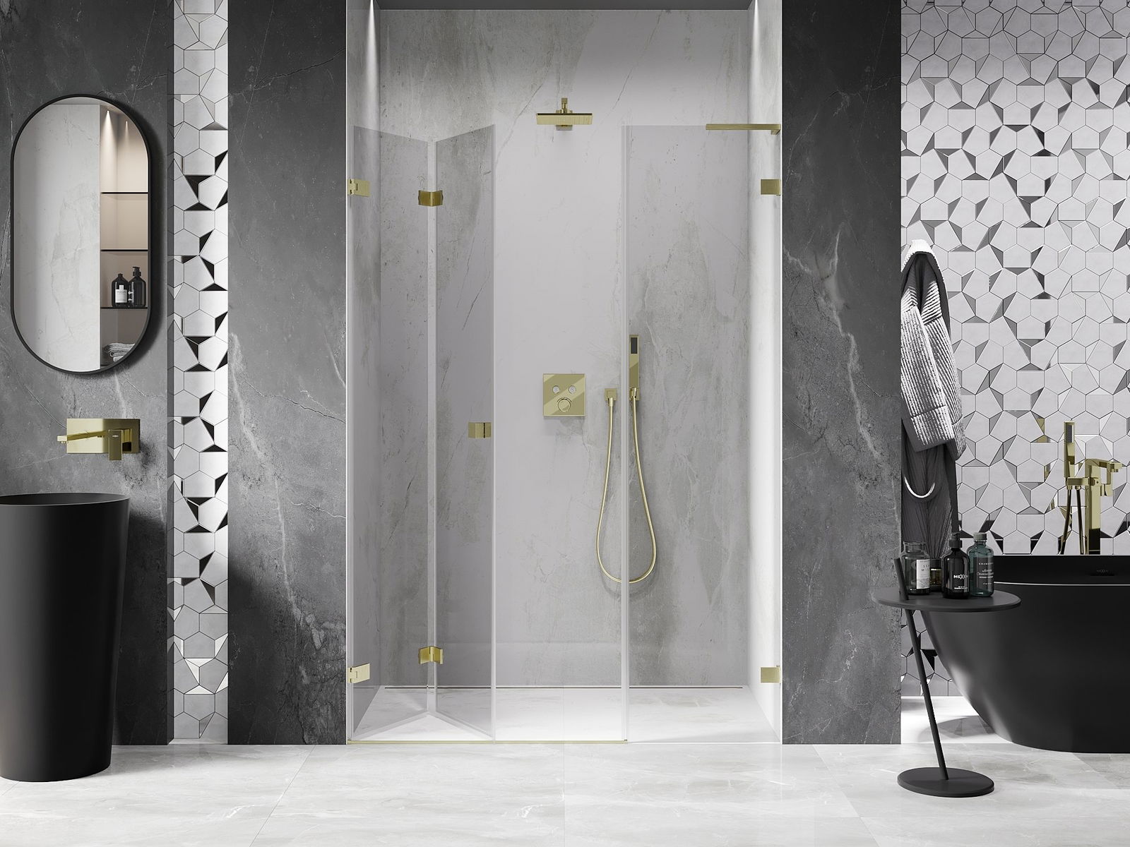Mexen Lunar-F L drzwi prysznicowe składane lewe 130 cm, transparent, złote szczotkowane - 836SL-130-050-55-00-L