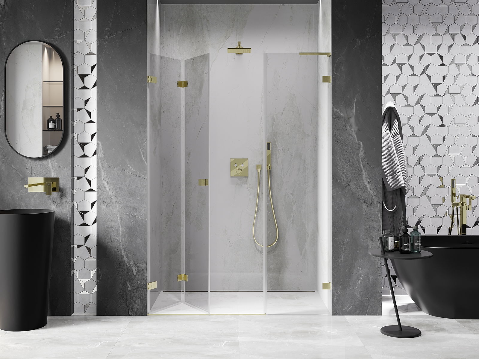 Mexen Lunar-F L drzwi prysznicowe składane lewe 145 cm, transparent, złote szczotkowane - 836SL-145-050-55-00-L