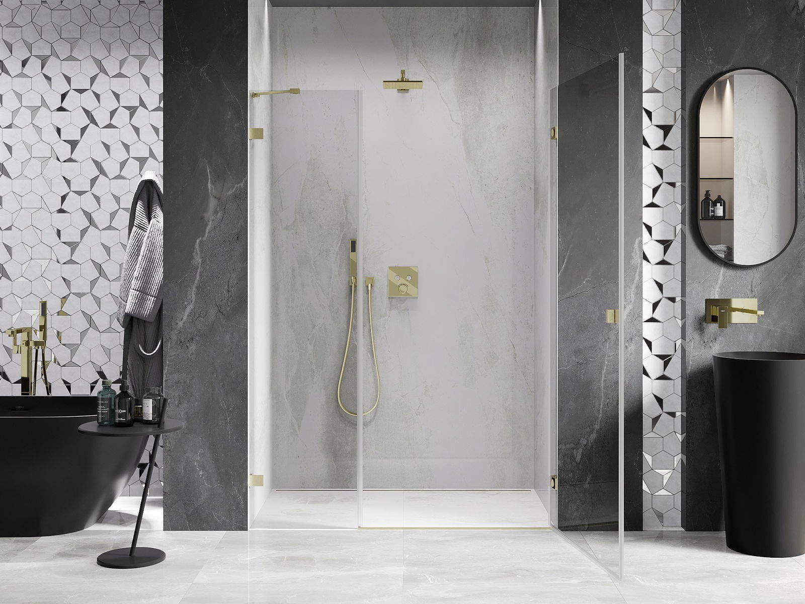 Klamry zostały wykonane z bardzo trwałego mosiądzu, a dodatkowo tworzą zlicowaną taflę szkła. Jest to doskonały wybór, który łączy elegancję, trwałość i nowoczesny design. Dzięki takim rozwiązaniom prysznic zyskuje na estetyce, a jednocześnie ułatwiają utrzymanie czystości.