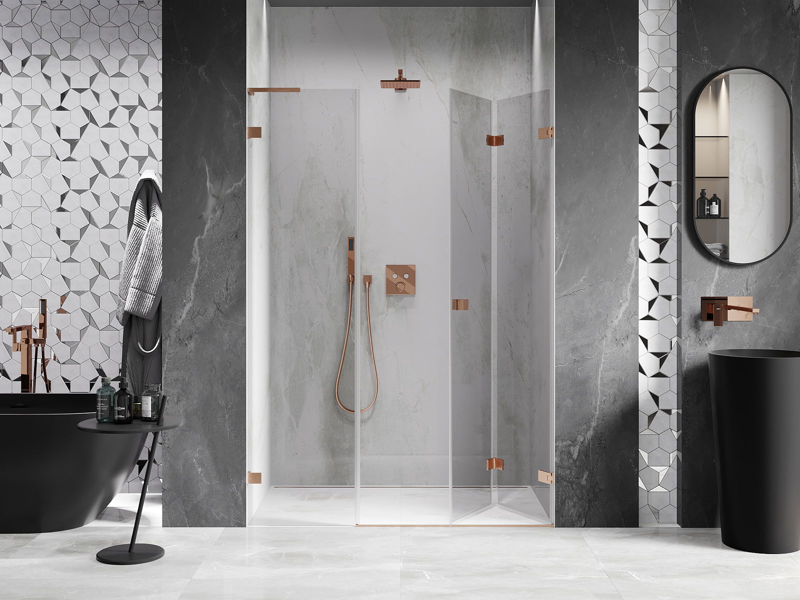 Mexen Lunar-F L drzwi prysznicowe składane prawe 130 cm, transparent, miedź szczotkowana - 836SL-130-050-65-00-P