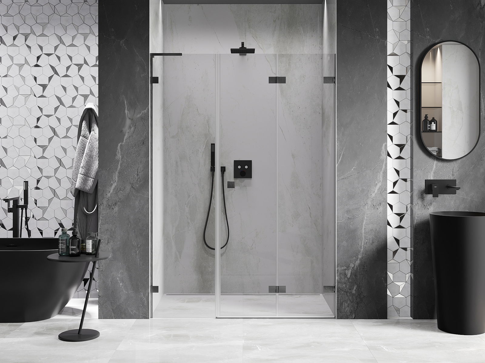 Możliwość składania drzwi, zarówno do zewnątrz, jak i do wewnątrz, pozwala uzyskać więcej przestrzeni podczas niekorzystania z prysznica. Jest to idealne rozwiązanie do mniejszych łazienek, maksymalnie wykorzystujące dostępną powierzchnię.