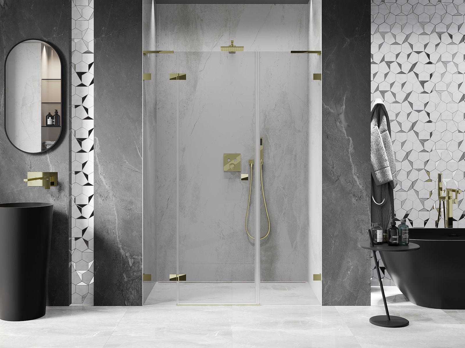 Mexen Lunar L drzwi prysznicowe uchylne lewe 135 cm, transparent, złote - 834SL-135-050-50-00-L