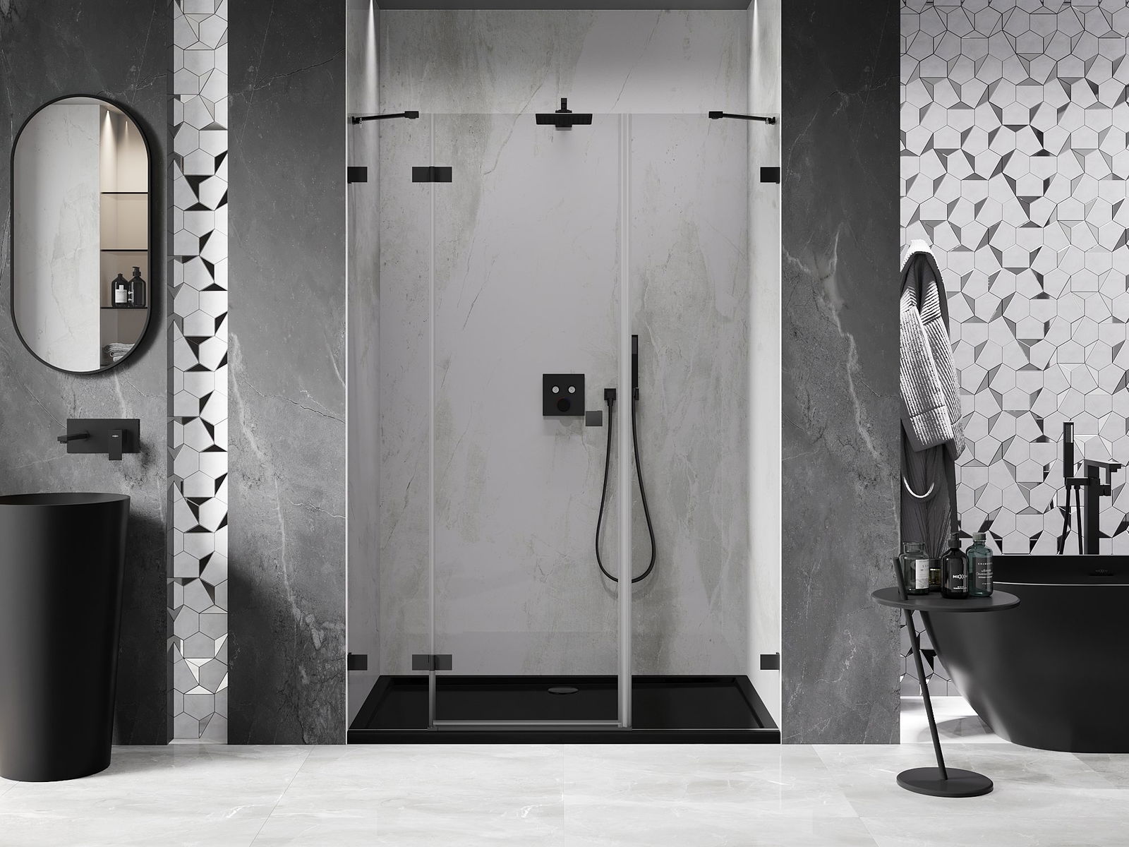Mexen Lunar drzwi prysznicowe uchylne lewe 155 cm, transparent, czarne - 834S-155-050-70-00-L