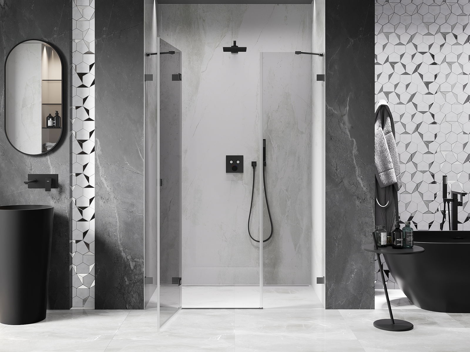 Klamry i zawiasy zostały wykonane z bardzo trwałego mosiądzu, a dodatkowo tworzą zlicowaną taflę szkła. Jest to doskonały wybór, który łączy elegancję, trwałość i nowoczesny design. Dzięki takim rozwiązaniom prysznic zyskuje na estetyce, a jednocześnie ułatwiają utrzymanie czystości.