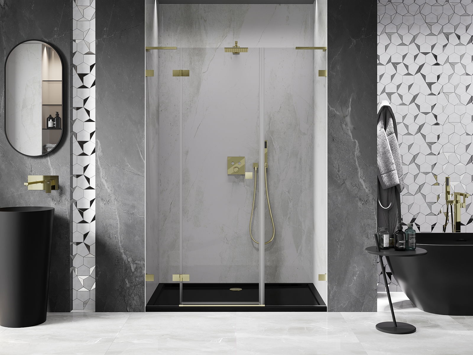 Mexen Lunar L drzwi prysznicowe uchylne lewe 135 cm, transparent, złote szczotkowane - 834SL-135-050-55-00-L
