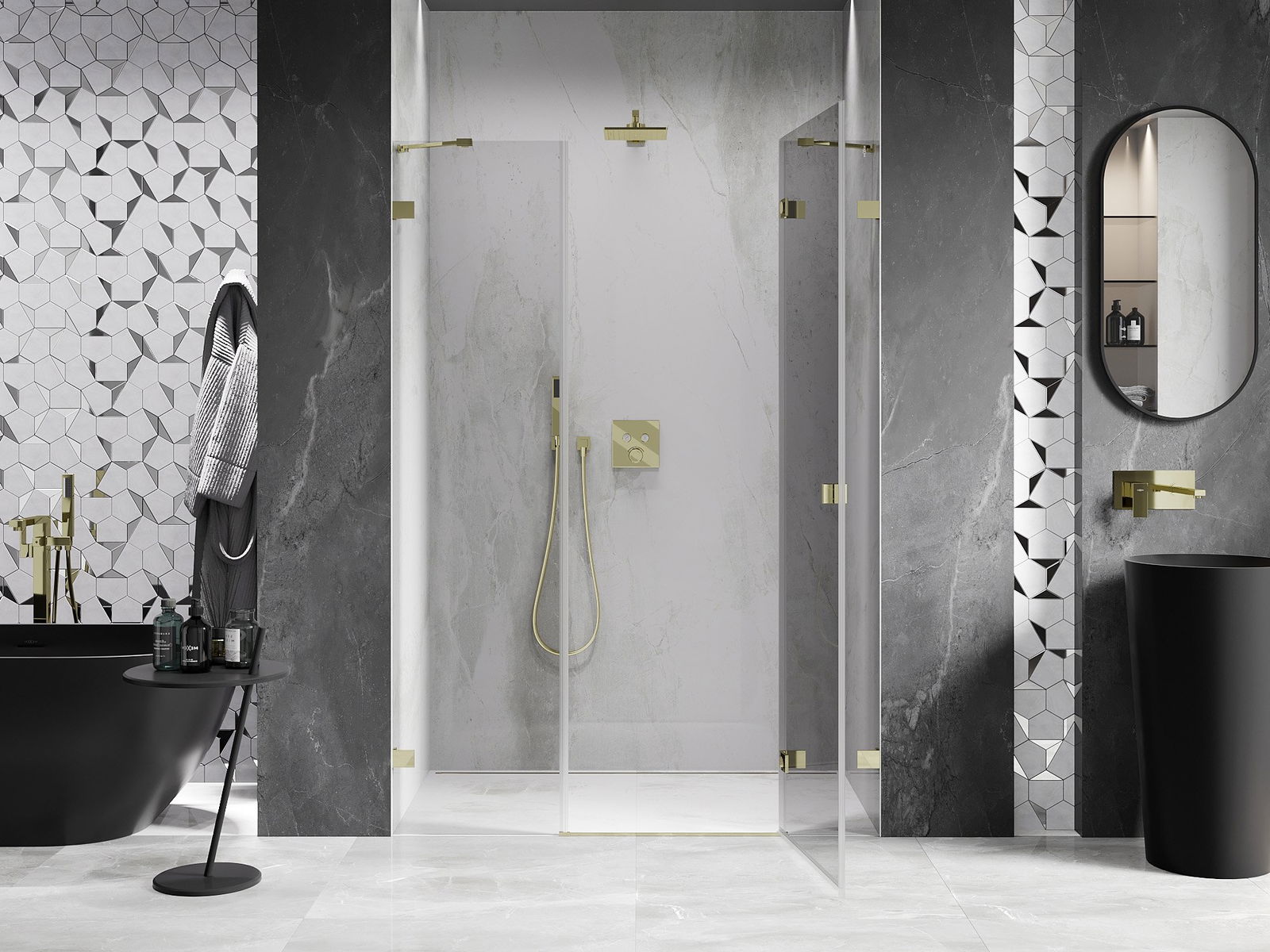 Klamry i zawiasy zostały wykonane z bardzo trwałego mosiądzu, a dodatkowo tworzą zlicowaną taflę szkła. Jest to doskonały wybór, który łączy elegancję, trwałość i nowoczesny design. Dzięki takim rozwiązaniom prysznic zyskuje na estetyce, a jednocześnie ułatwiają utrzymanie czystości.