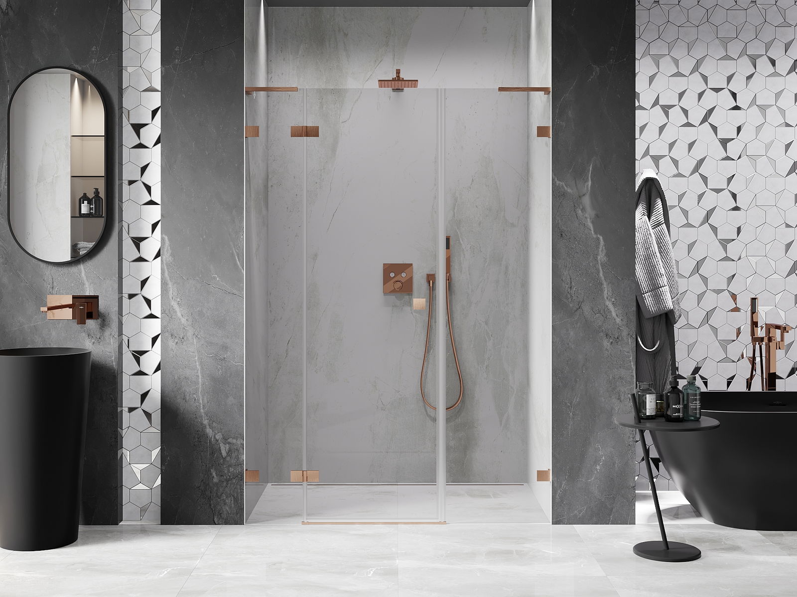 Mexen Lunar L drzwi prysznicowe uchylne lewe 125 cm, transparent, miedź szczotkowana - 834SL-125-050-65-00-L