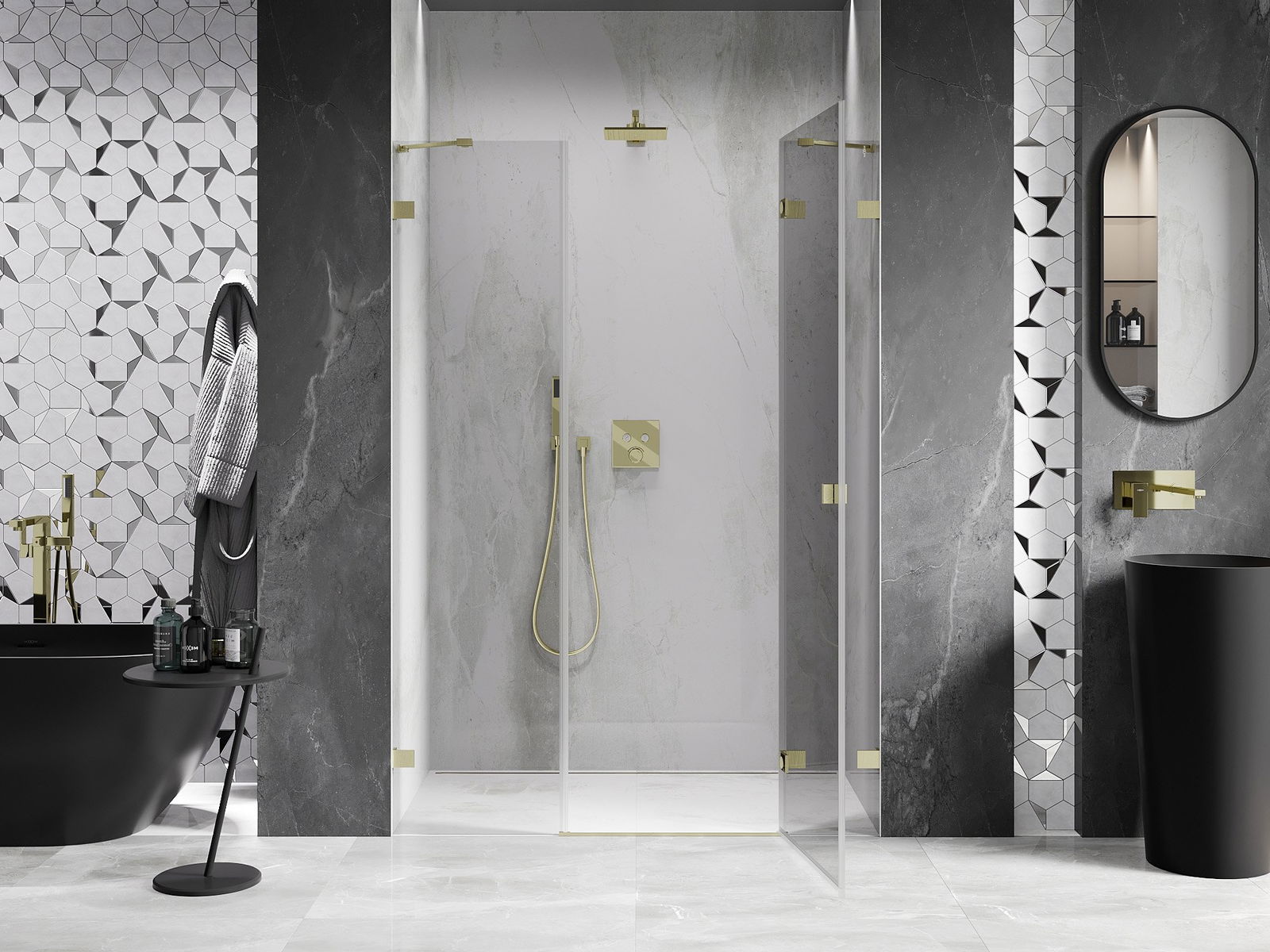 Mexen Lunar drzwi prysznicowe uchylne prawe 140 cm, transparent, złote szczotkowane - 834S-140-050-55-00-P