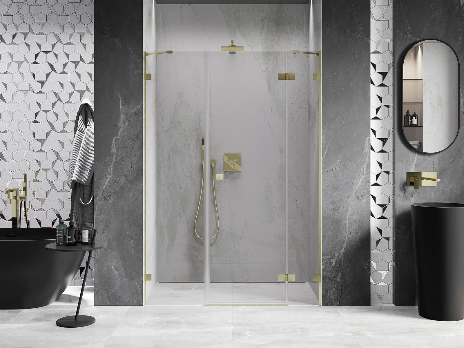Mexen Lunar drzwi prysznicowe uchylne prawe 145 cm, transparent, złote szczotkowane - 834S-145-050-55-00-P