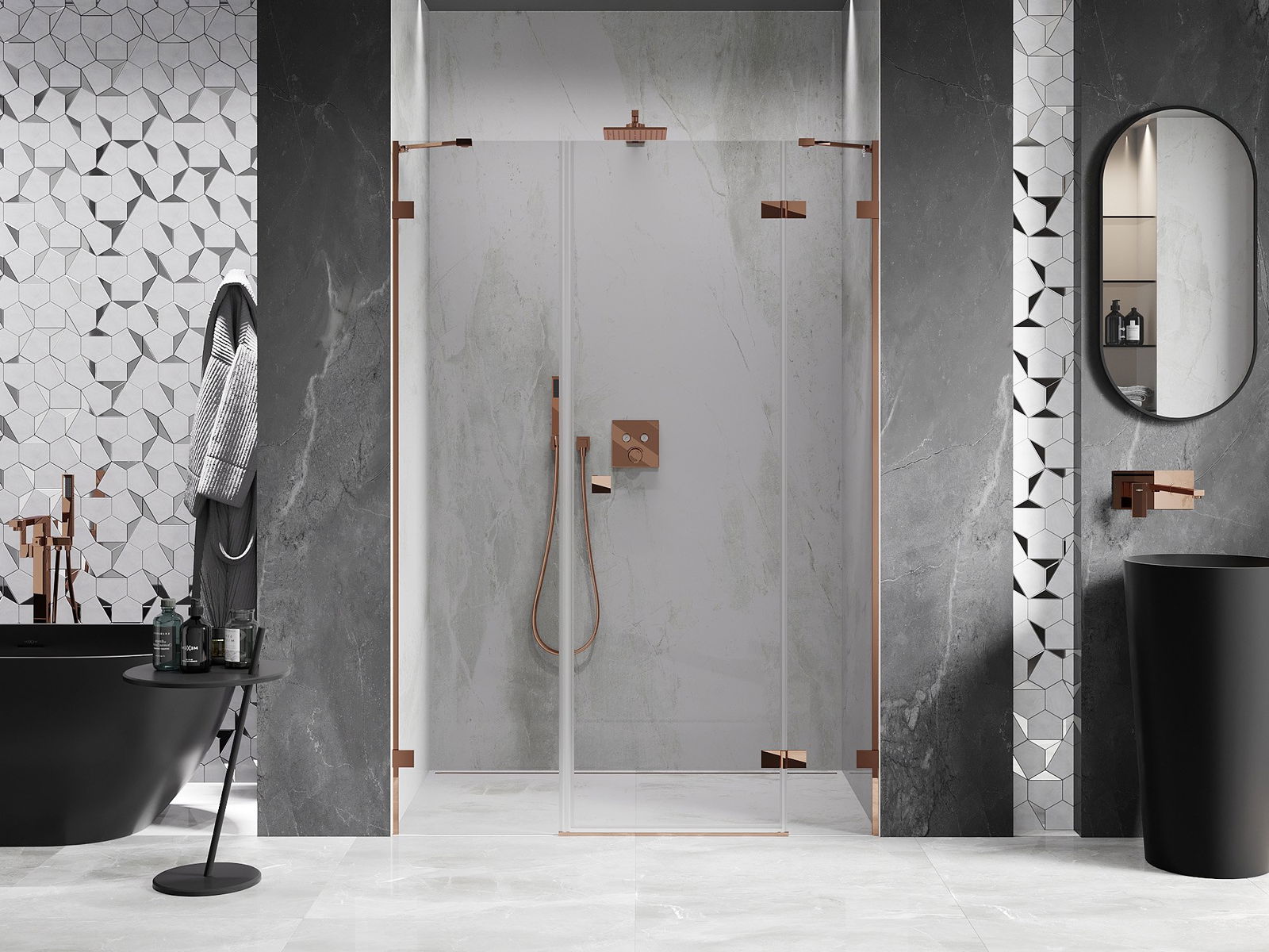 Mexen Lunar drzwi prysznicowe uchylne prawe 120 cm, transparent, różowe złoto - 834S-120-050-60-00-P