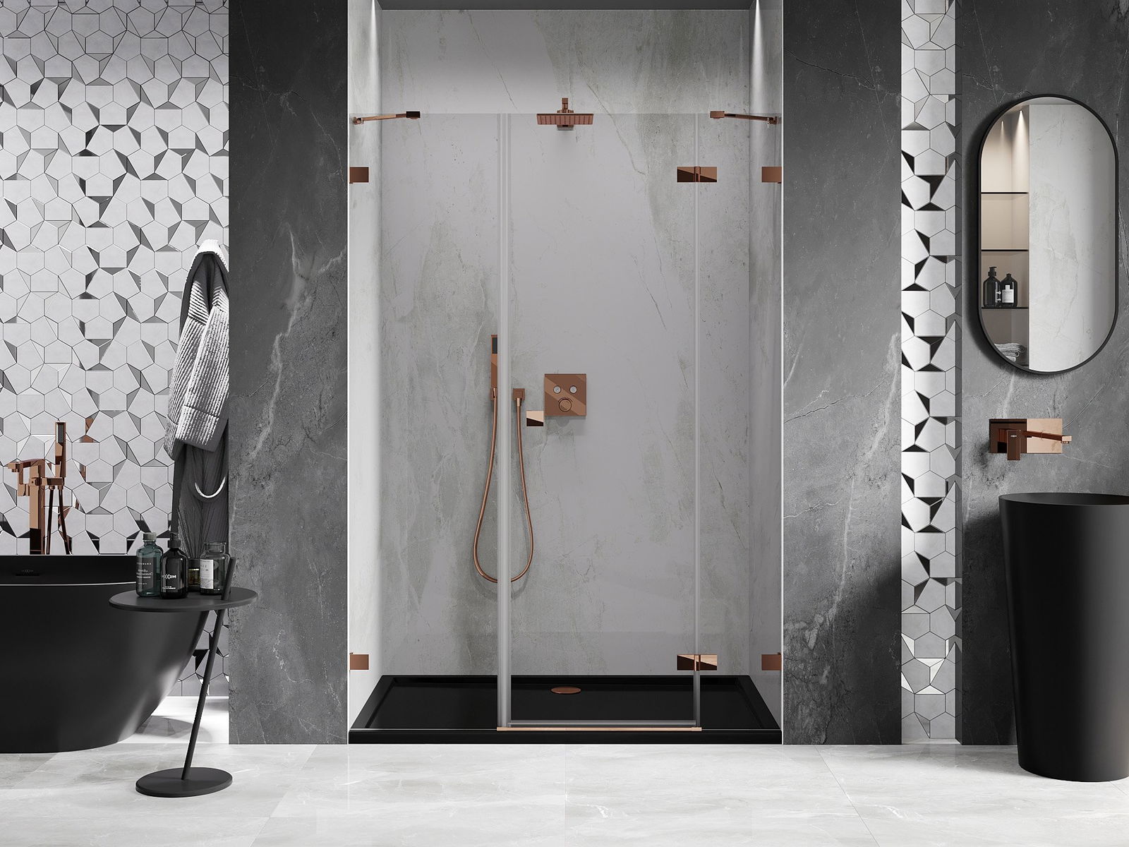 Mexen Lunar drzwi prysznicowe uchylne prawe 130 cm, transparent, różowe złoto - 834S-130-050-60-00-P