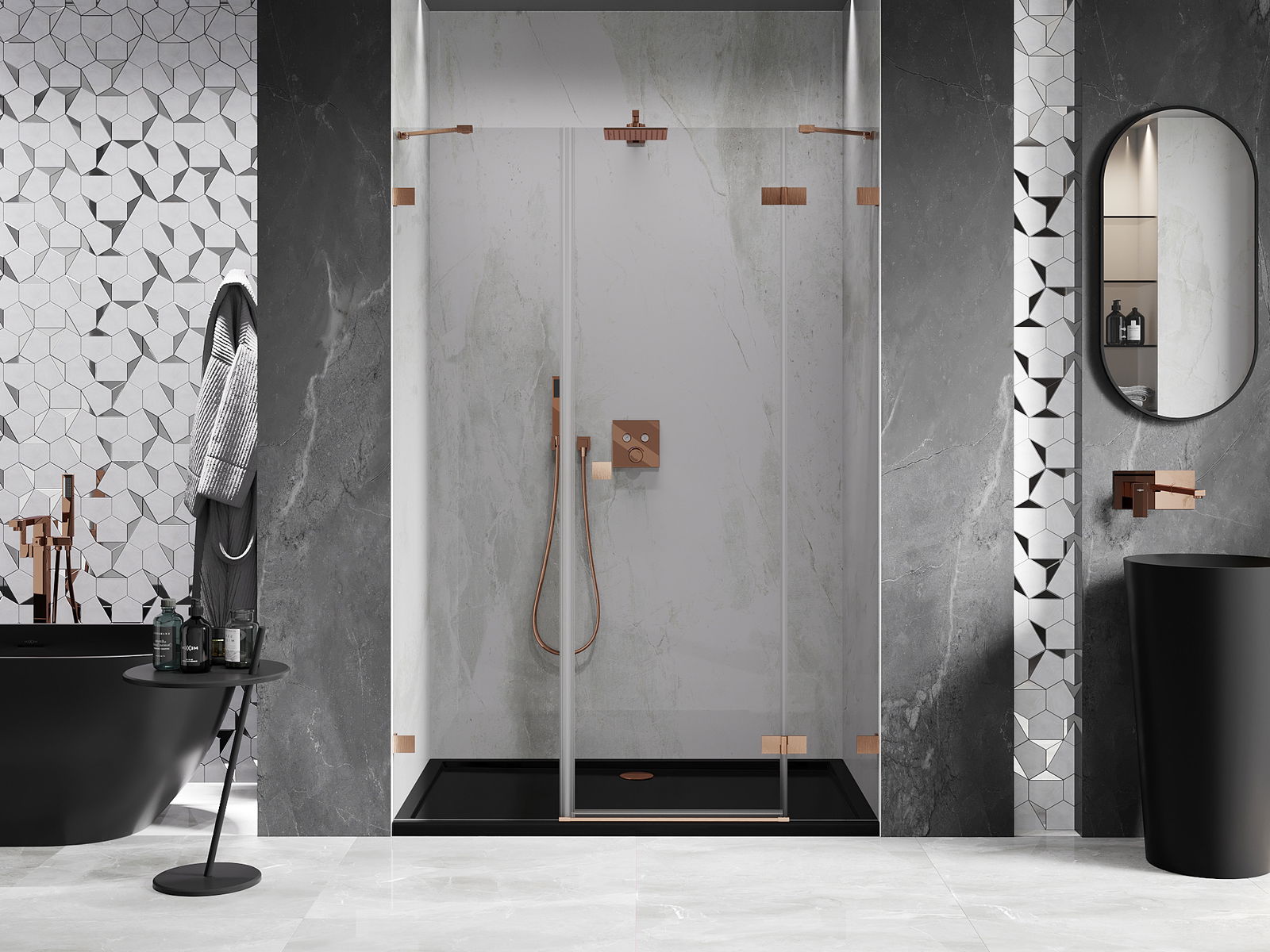 Mexen Lunar drzwi prysznicowe uchylne prawe 155 cm, transparent, miedź szczotkowana - 834S-155-050-65-00-P