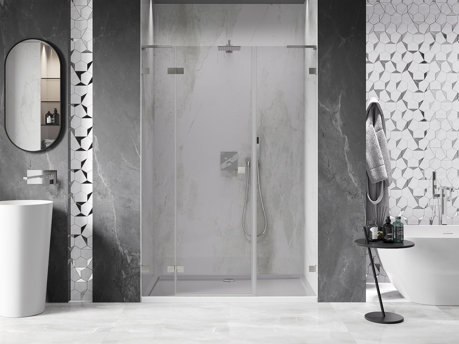 Klamry i zawiasy zostały wykonane z bardzo trwałego mosiądzu, a dodatkowo tworzą zlicowaną taflę szkła. Jest to doskonały wybór, który łączy elegancję, trwałość i nowoczesny design. Dzięki takim rozwiązaniom prysznic zyskuje na estetyce, a jednocześnie ułatwiają utrzymanie czystości.