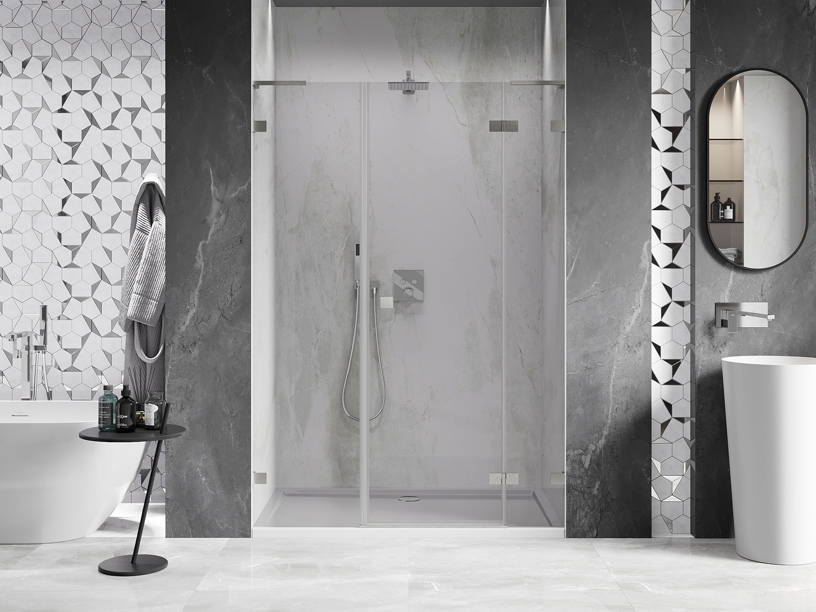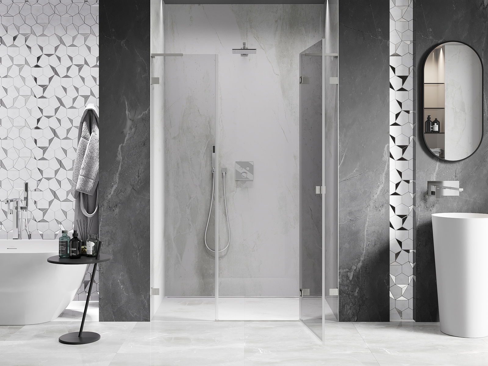 Klamry i zawiasy zostały wykonane z bardzo trwałego mosiądzu, a dodatkowo tworzą zlicowaną taflę szkła. Jest to doskonały wybór, który łączy elegancję, trwałość i nowoczesny design. Dzięki takim rozwiązaniom prysznic zyskuje na estetyce, a jednocześnie ułatwiają utrzymanie czystości.