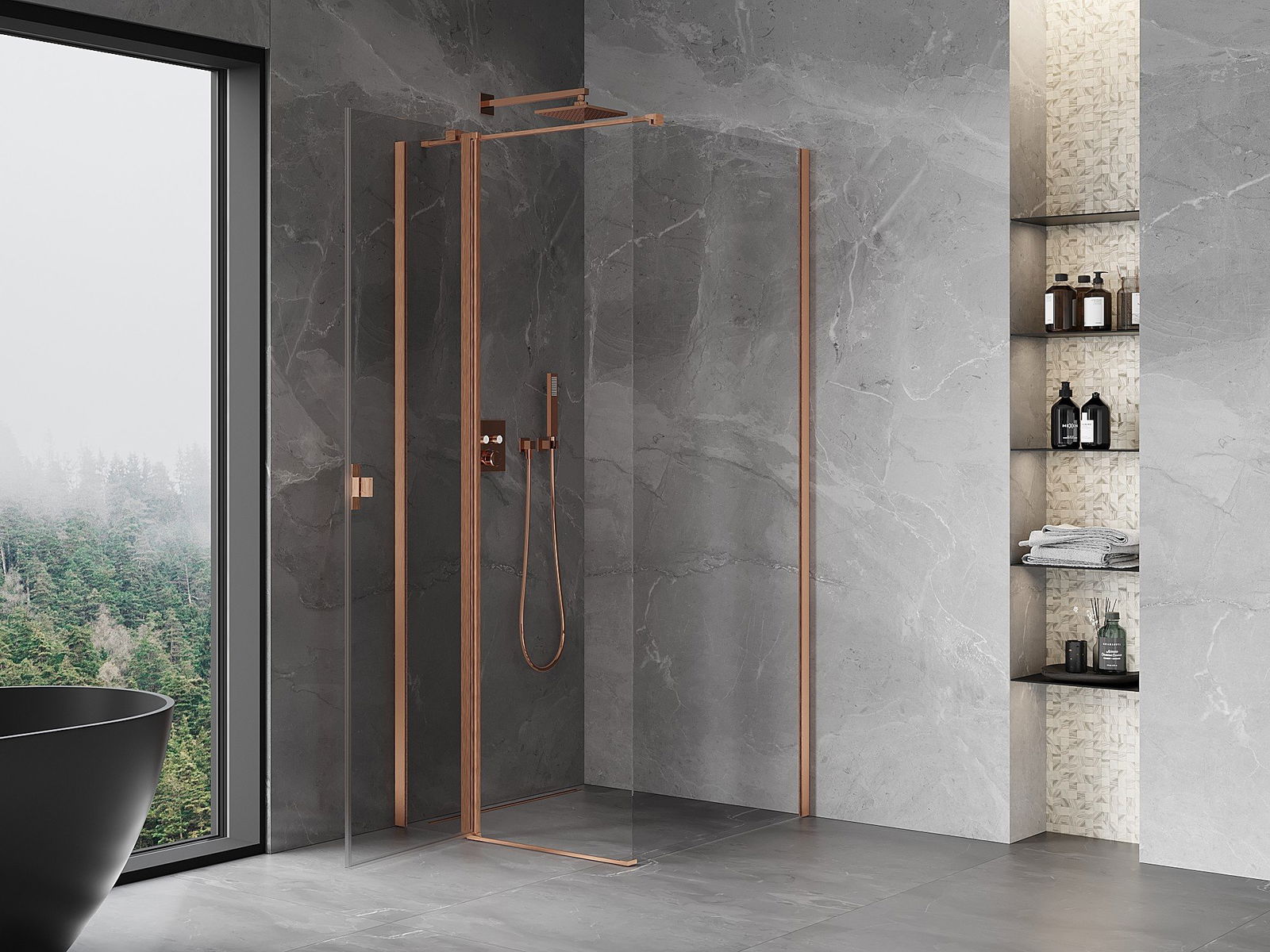 Poręczny i wygodny uchwyt został wykonany z trwałego i odpornego metalu. Modny kształt w połączeniu z wykończeniem dopasowanym do koloru profili nadaje całości nowoczesnego i stylowego wyglądu, podkreślając estetykę każdej łazienki.