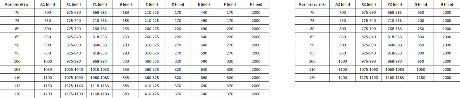 Rozmiar: 80x110 cm (drzwi prawe 80 cm, ścianka 110 cm)