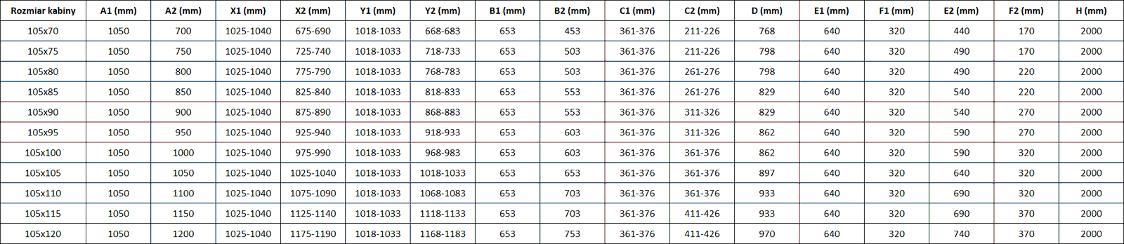 Rozmiar: 105x105 cm (drzwi lewe 105 cm, drzwi prawe 105 cm)