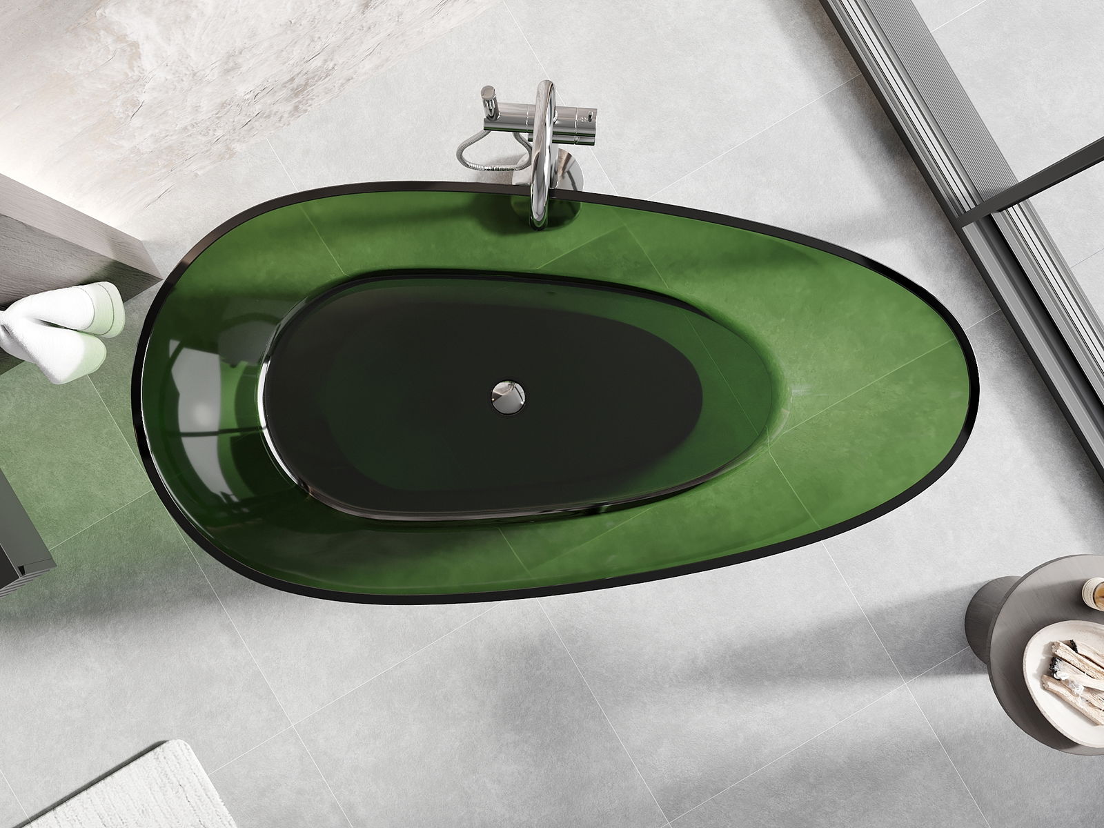 Jest to nowoczesny materiał łączący elegancki wygląd z wysoką trwałością. Jest odporny na uszkodzenia mechaniczne, łatwy w czyszczeniu i przyjemny w dotyku. Transparentna forma oraz cienki rant wanny nadaje jej lekkości i unikalnego charakteru, tworząc efektowny akcent w aranżacji łazienki.