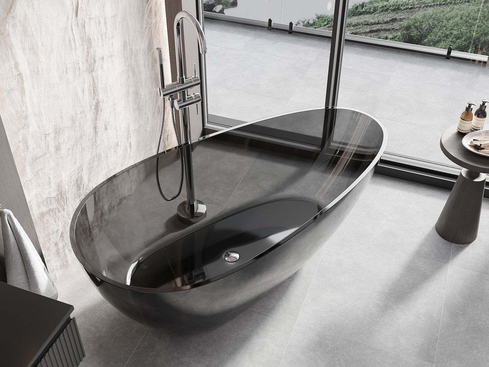 Jest to nowoczesny materiał łączący elegancki wygląd z wysoką trwałością. Jest odporny na uszkodzenia mechaniczne, łatwy w czyszczeniu i przyjemny w dotyku. Transparentna forma oraz cienki rant wanny nadaje jej lekkości i unikalnego charakteru, tworząc efektowny akcent w aranżacji łazienki.