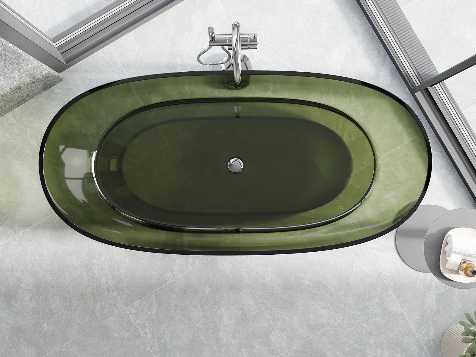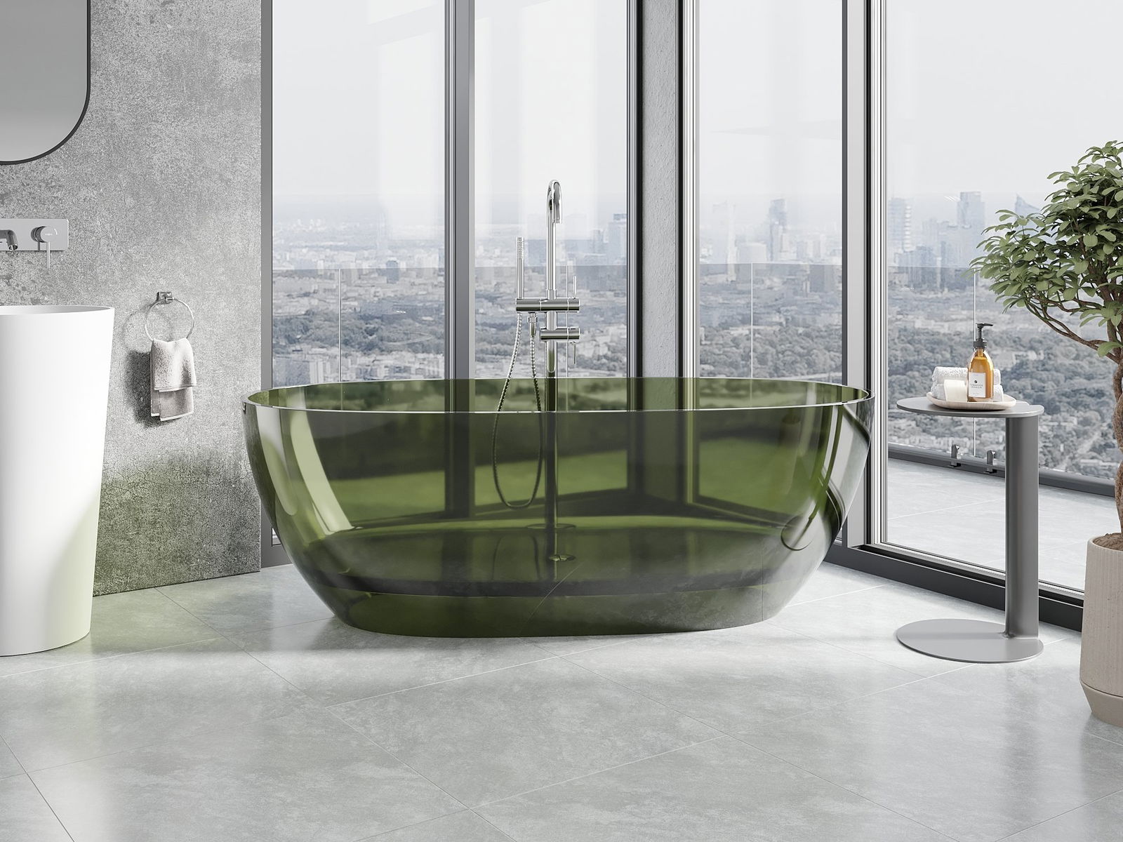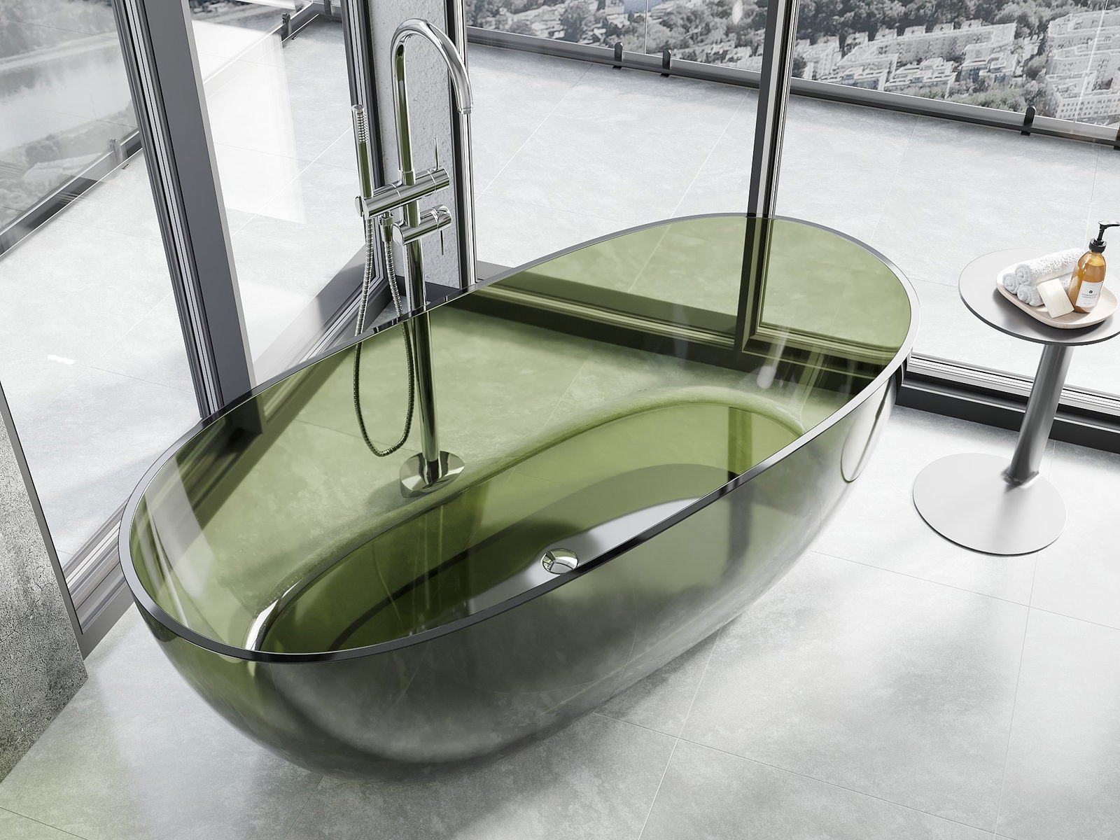 Jest to nowoczesny materiał łączący elegancki wygląd z wysoką trwałością. Jest odporny na uszkodzenia mechaniczne, łatwy w czyszczeniu i przyjemny w dotyku. Transparentna forma oraz cienki rant wanny nadaje jej lekkości i unikalnego charakteru, tworząc efektowny akcent w aranżacji łazienki.
