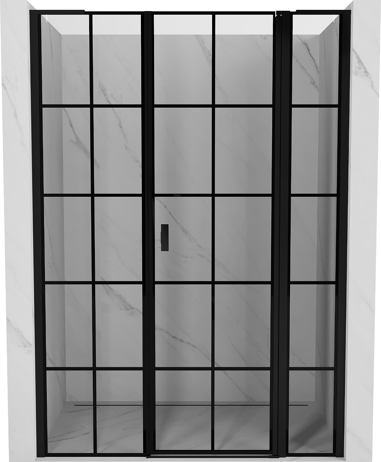 Mexen Mist L drzwi prysznicowe uchylne prawe 145 cm, czarna kratka, czarne - 8A4L-145-001-70-77-P