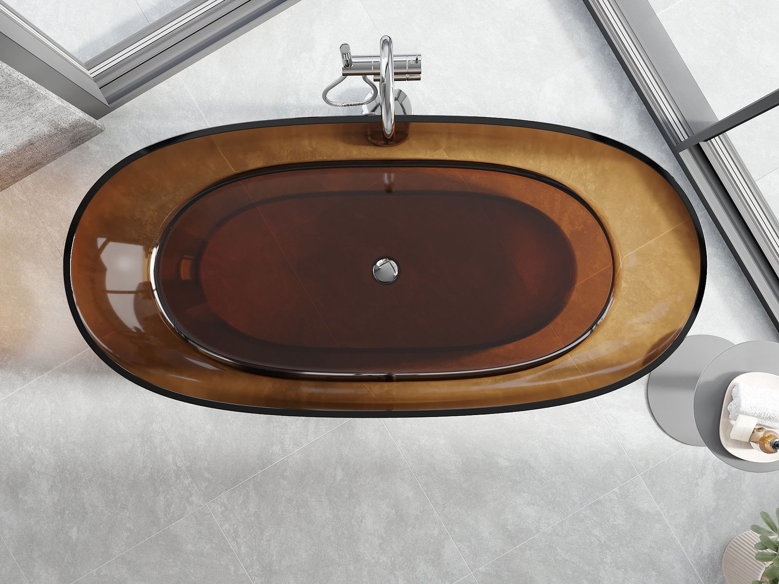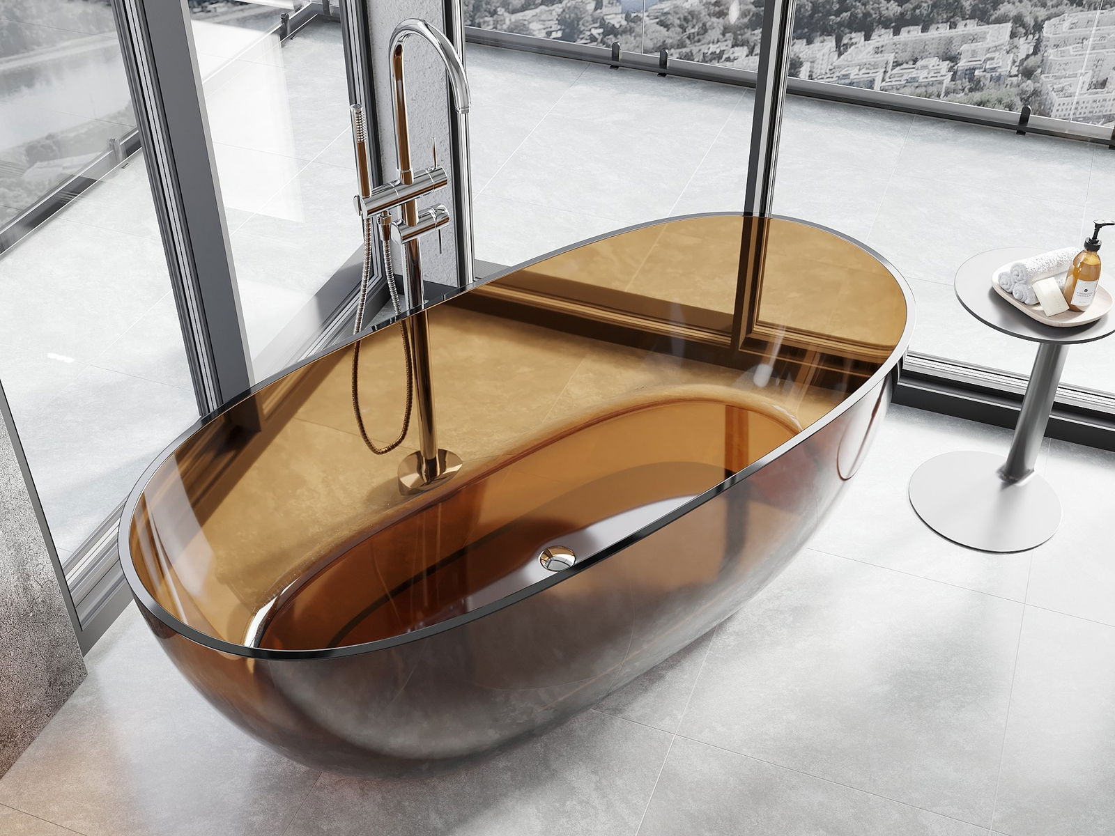Jest to nowoczesny materiał łączący elegancki wygląd z wysoką trwałością. Jest odporny na uszkodzenia mechaniczne, łatwy w czyszczeniu i przyjemny w dotyku. Transparentna forma oraz cienki rant wanny nadaje jej lekkości i unikalnego charakteru, tworząc efektowny akcent w aranżacji łazienki.