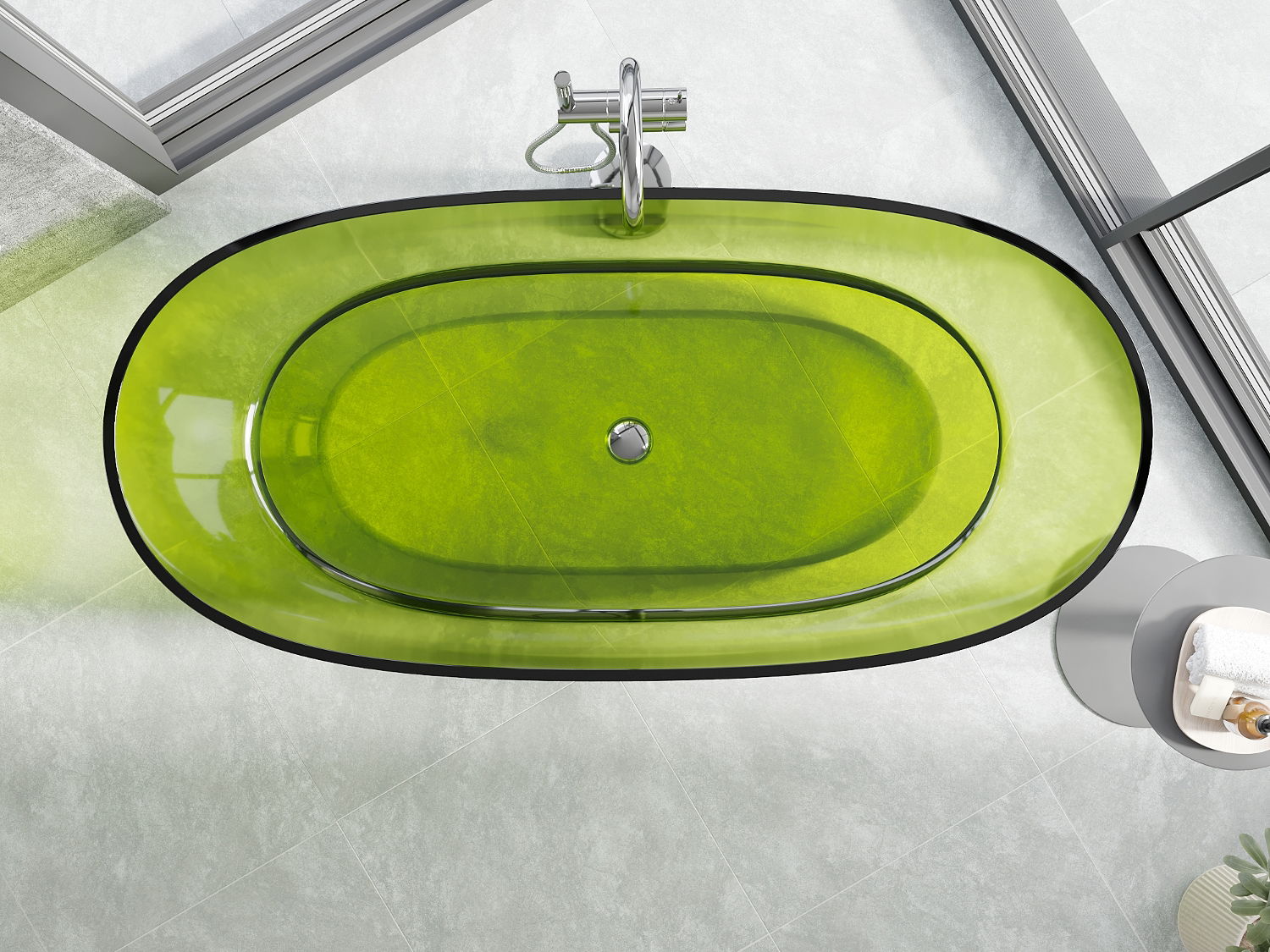 Jest to nowoczesny materiał łączący elegancki wygląd z wysoką trwałością. Jest odporny na uszkodzenia mechaniczne, łatwy w czyszczeniu i przyjemny w dotyku. Transparentna forma oraz cienki rant wanny nadaje jej lekkości i unikalnego charakteru, tworząc efektowny akcent w aranżacji łazienki.