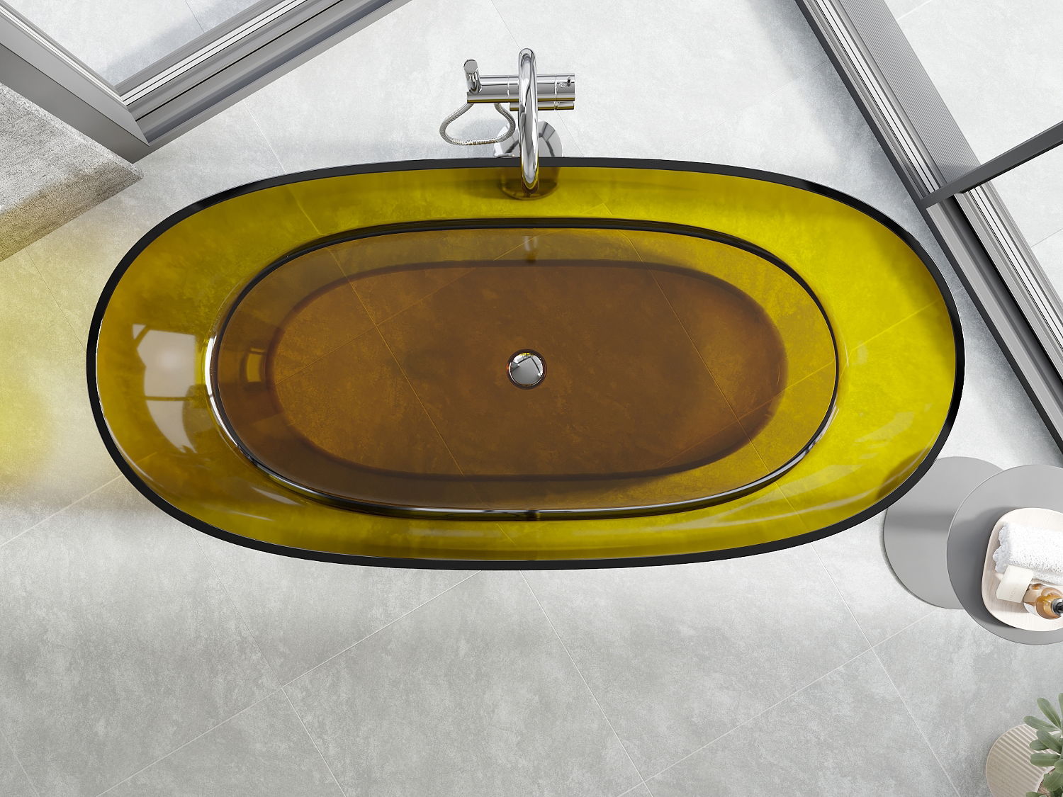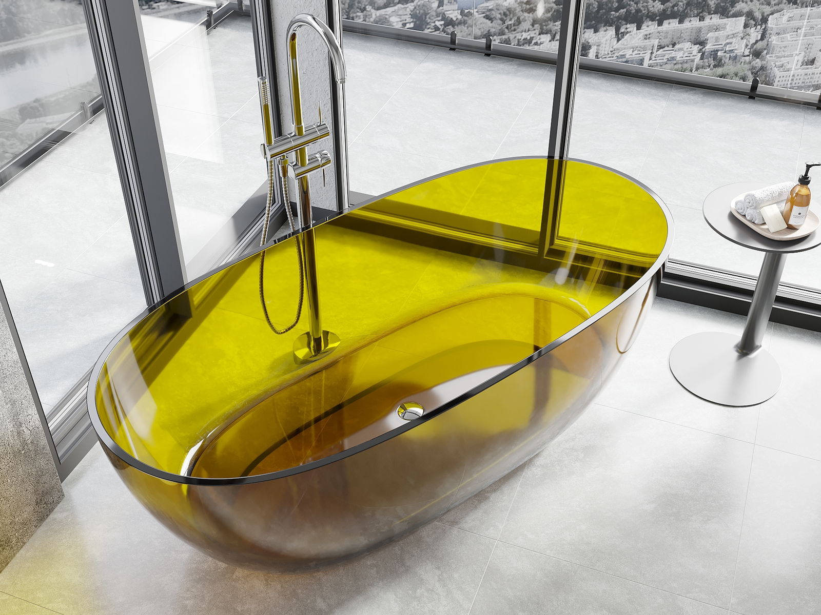 Jest to nowoczesny materiał łączący elegancki wygląd z wysoką trwałością. Jest odporny na uszkodzenia mechaniczne, łatwy w czyszczeniu i przyjemny w dotyku. Transparentna forma oraz cienki rant wanny nadaje jej lekkości i unikalnego charakteru, tworząc efektowny akcent w aranżacji łazienki.