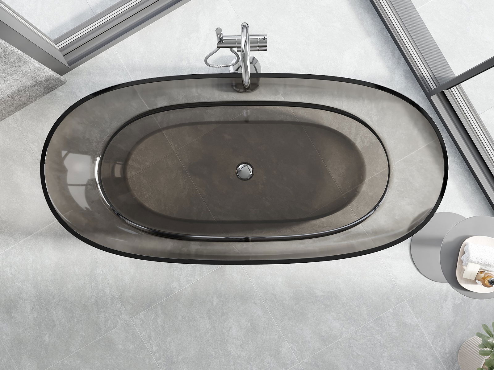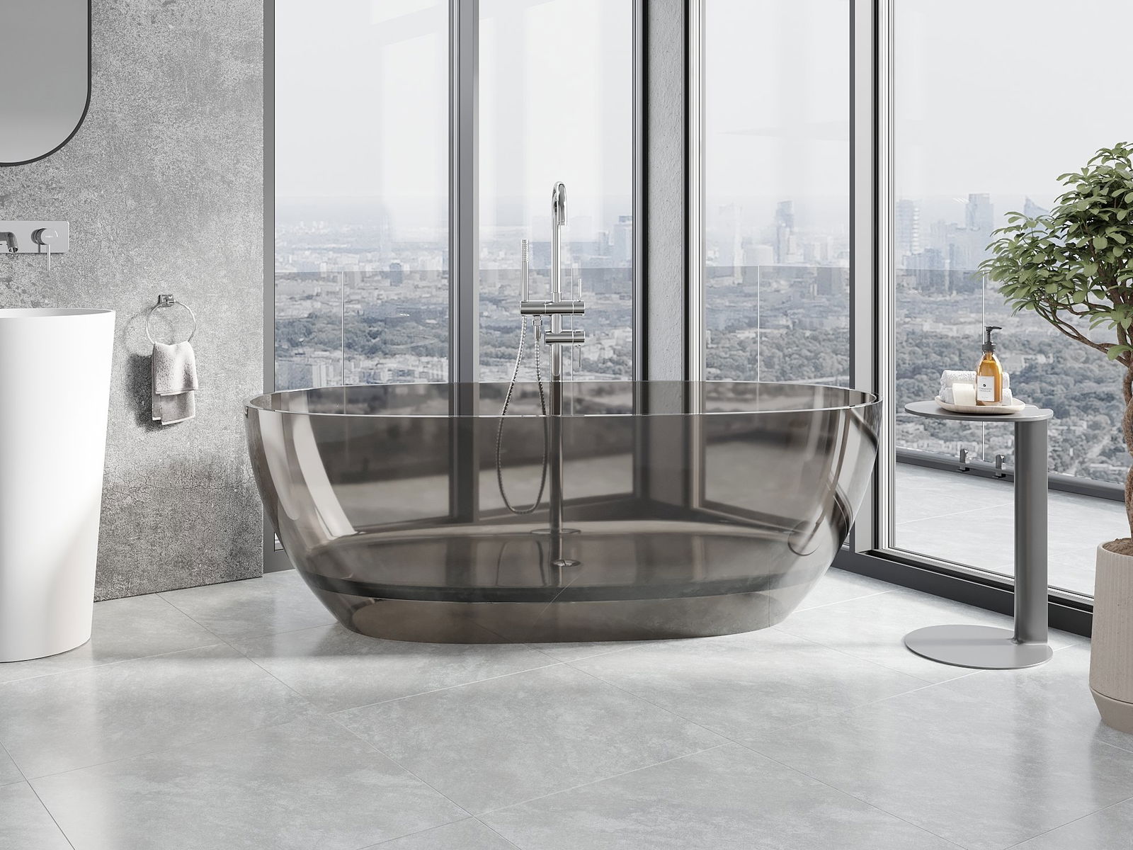 Jest to nowoczesny materiał łączący elegancki wygląd z wysoką trwałością. Jest odporny na uszkodzenia mechaniczne, łatwy w czyszczeniu i przyjemny w dotyku. Transparentna forma oraz cienki rant wanny nadaje jej lekkości i unikalnego charakteru, tworząc efektowny akcent w aranżacji łazienki.