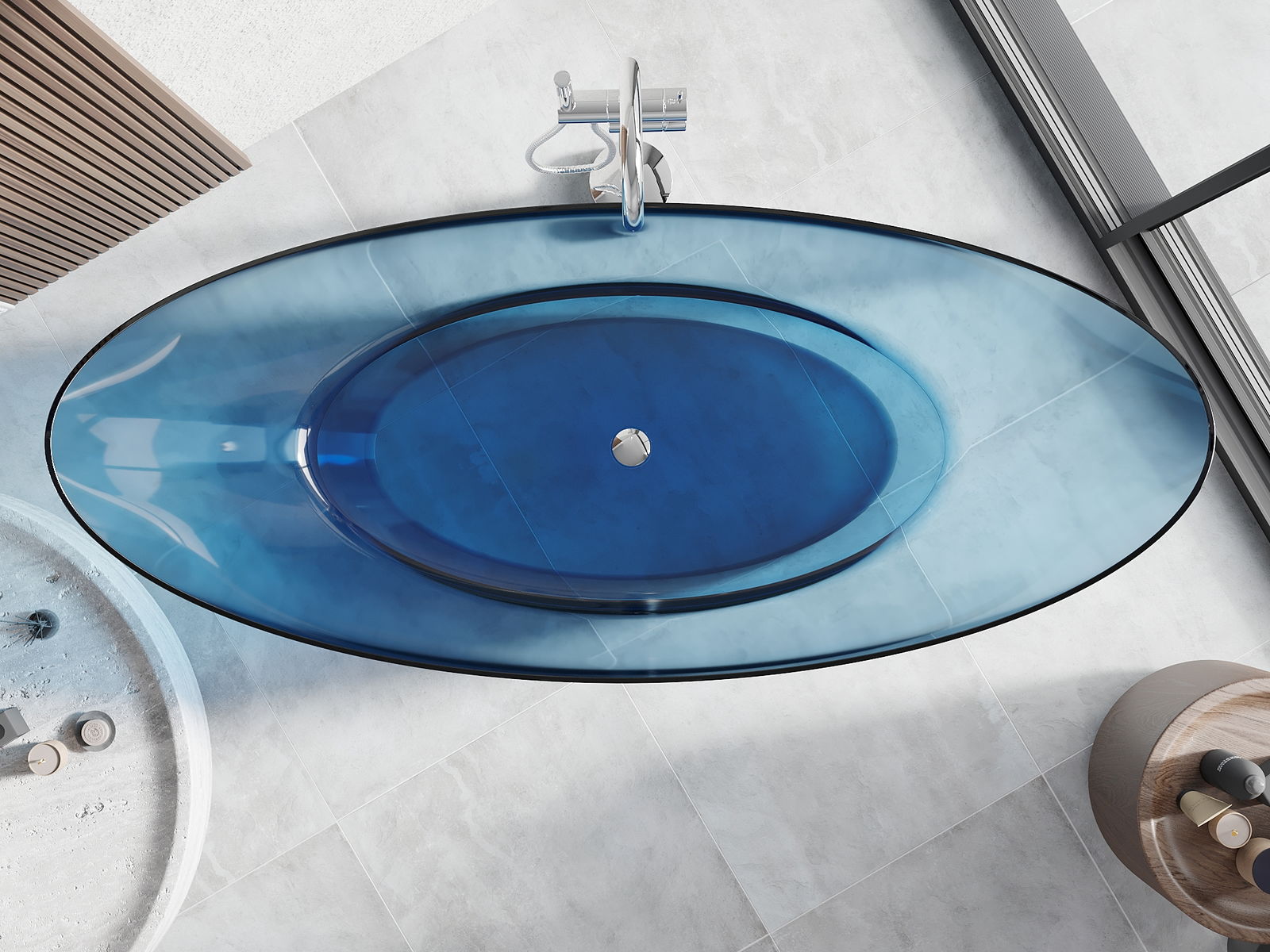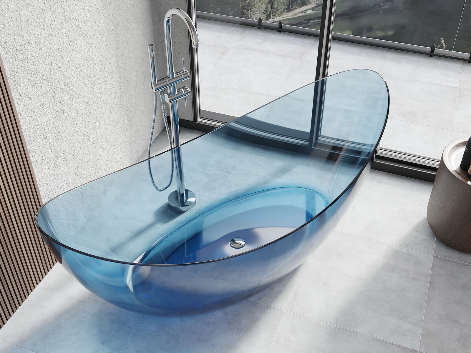 Jest to nowoczesny materiał łączący elegancki wygląd z wysoką trwałością. Jest odporny na uszkodzenia mechaniczne, łatwy w czyszczeniu i przyjemny w dotyku. Transparentna forma oraz cienki rant wanny nadaje jej lekkości i unikalnego charakteru, tworząc efektowny akcent w aranżacji łazienki.
