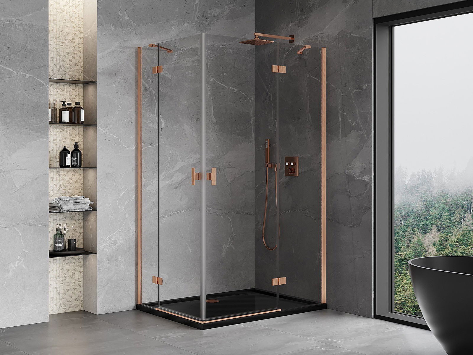 Mexen Mist-H Duo kabina prysznicowa uchylna prawa 85 x 120 cm, transparent, miedź szczotkowana - 8A5-085L-120P-65-00