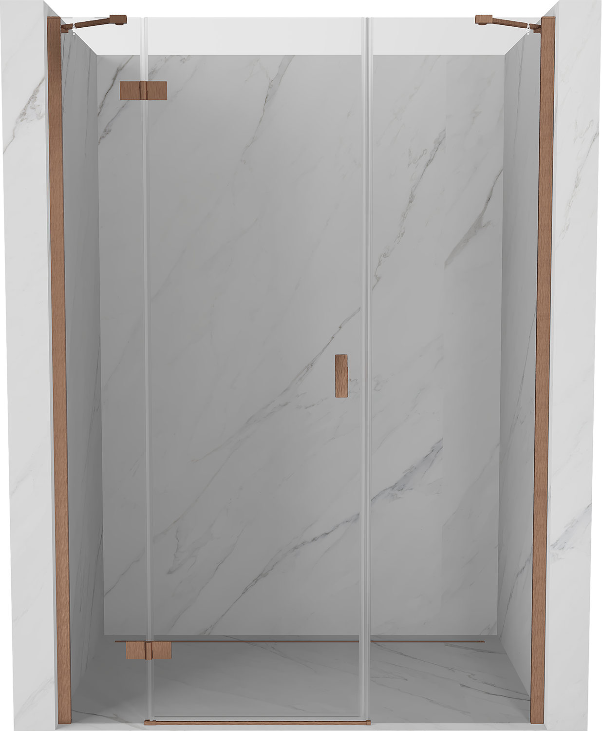 Specyfikacja produktu: Rozmiar: 150x200 cm Strona montażu: Lewa Wejście: Uchylne Kolor szkła: Transparentne Wykończenie: Miedź szczotkowana Profil: Aluminiowy Wspornik: Stal nierdzewna Rodzaj szkła: Hartowane Grubość szkła: 6 mm Powłoka ułatwiająca czyszczenie Możliwa regulacja szerokości Możliwość montażu na brodziku lub płytkach Mechanizm unoszenia i opuszczania drzwi Mosiężne zawiasy zlicowane z taflą szkła Listwa magnetyczna oraz uszczelki elastomerowe odprowadzające wodę Aluminiowy próg uszczelniający drzwi