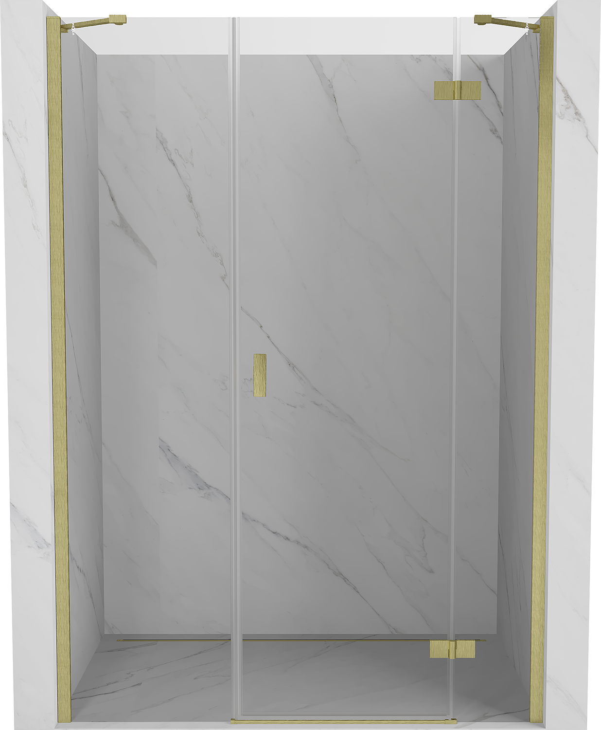 Specyfikacja produktu: Rozmiar: 145x200 cm Strona montażu: Prawa Wejście: Uchylne Kolor szkła: Transparentne Wykończenie: Złoty szczotkowany Profil: Aluminiowy Wspornik: Stal nierdzewna Rodzaj szkła: Hartowane Grubość szkła: 6 mm Powłoka ułatwiająca czyszczenie Możliwa regulacja szerokości Możliwość montażu na brodziku lub płytkach Mechanizm unoszenia i opuszczania drzwi Mosiężne zawiasy zlicowane z taflą szkła Listwa magnetyczna oraz uszczelki elastomerowe odprowadzające wodę Aluminiowy próg uszczelniający drzwi
