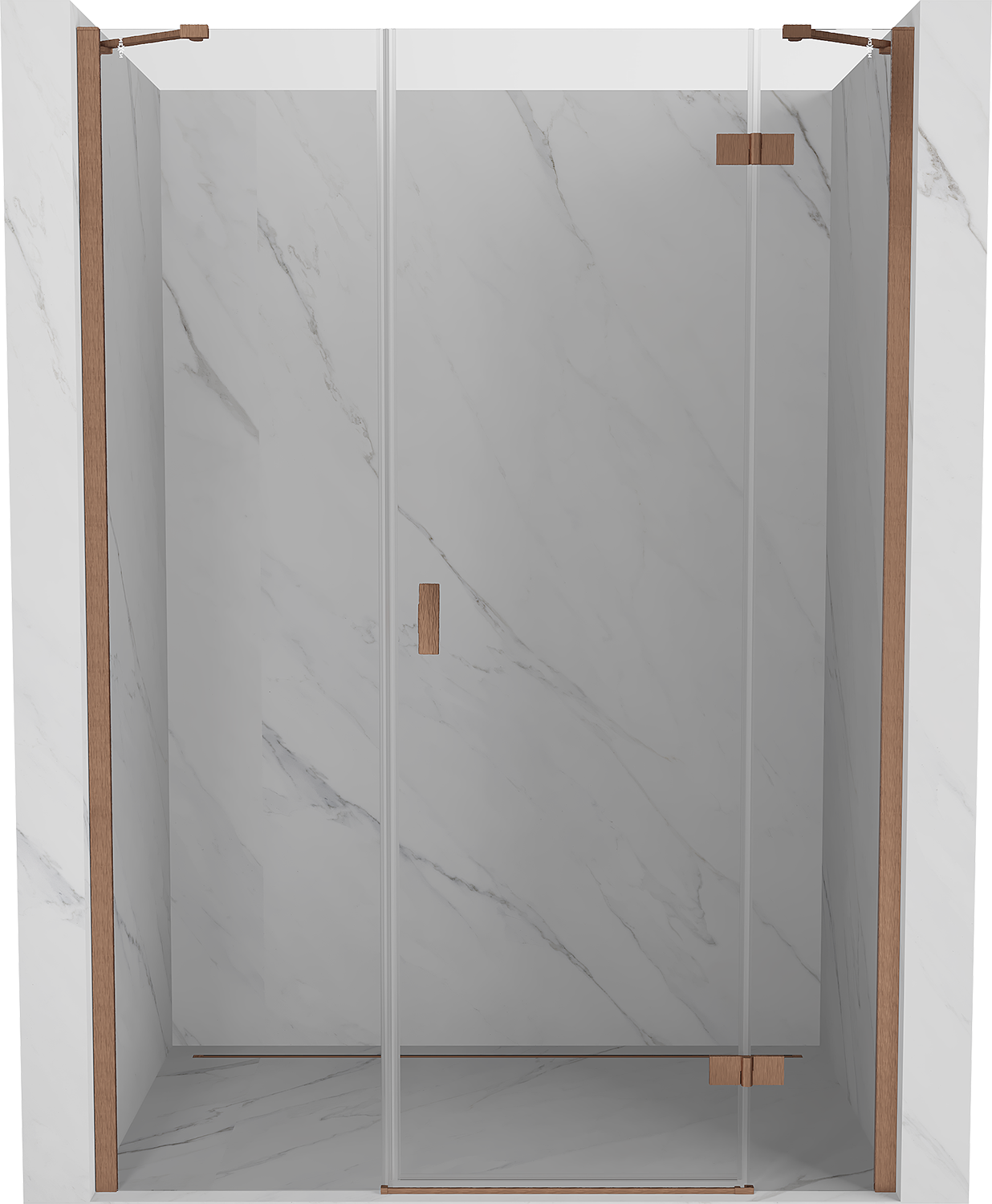 Specyfikacja produktu: Rozmiar: 160x200 cm Strona montażu: Prawa Wejście: Uchylne Kolor szkła: Transparentne Wykończenie: Miedź szczotkowana Profil: Aluminiowy Wspornik: Stal nierdzewna Rodzaj szkła: Hartowane Grubość szkła: 6 mm Powłoka ułatwiająca czyszczenie Możliwa regulacja szerokości Możliwość montażu na brodziku lub płytkach Mechanizm unoszenia i opuszczania drzwi Mosiężne zawiasy zlicowane z taflą szkła Listwa magnetyczna oraz uszczelki elastomerowe odprowadzające wodę Aluminiowy próg uszczelniający drzwi