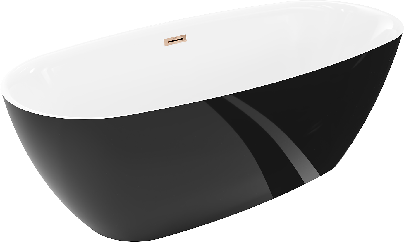 Specyfikacja produktu: Rozmiar: 170 x 75 cm Wysokość: 58 cm Głębokość: 45 cm Montaż: Wolnostojąca Materiał: Akryl sanitarny Kolor: Biały/Czarny Wykończenie: Różowe złoto Otwór przelewowy. Tak Otwór na baterie: Nie W komplecie syfon oraz korek klik klak Odporność na matowienie i promienie uv