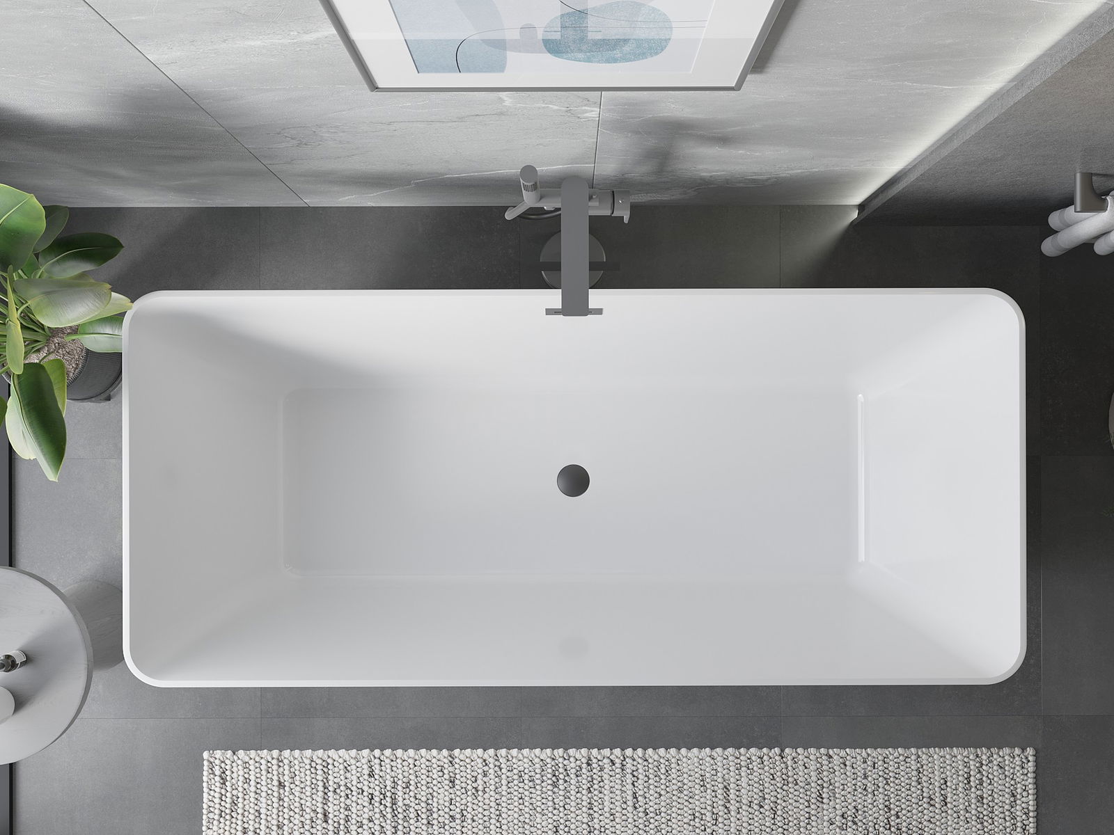 Jest to nowoczesny materiał łączący elegancki wygląd z wysoką trwałością. Jest odporny na uszkodzenia mechaniczne, łatwy w czyszczeniu i przyjemny w dotyku. Transparentna forma oraz cienki rant wanny nadaje jej lekkości i unikalnego charakteru, tworząc efektowny akcent w aranżacji łazienki.