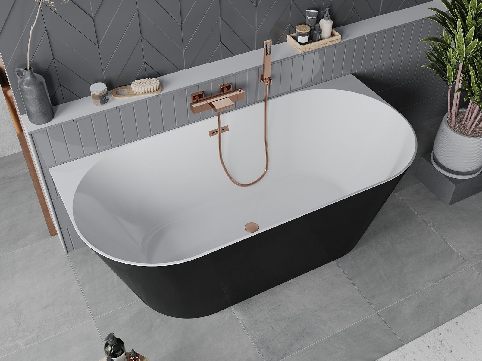 • Mexen Oval Slim wanna wolnostojąca przyścienna 170 x 80 cm, biała/czarna, przelew miedź szczotkowana - 52661708075-65