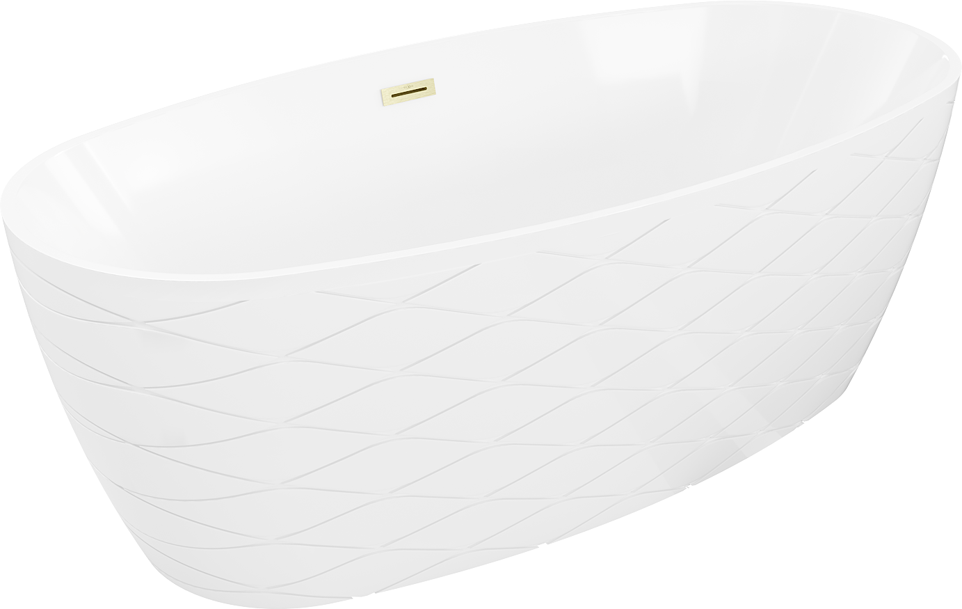 Specyfikacja produktu: Rozmiar: 170 x 80 cm Wysokość: 59 cm Głębokość: 45 cm Montaż: Wolnostojąca Materiał: Akryl sanitarny Kolor: Biały Wykończenie: Złoty szczotkowany Struktura: Wzór Otwór przelewowy. Tak Otwór na baterie: Nie W komplecie syfon oraz korek klik klak Odporność na matowienie i promienie uv