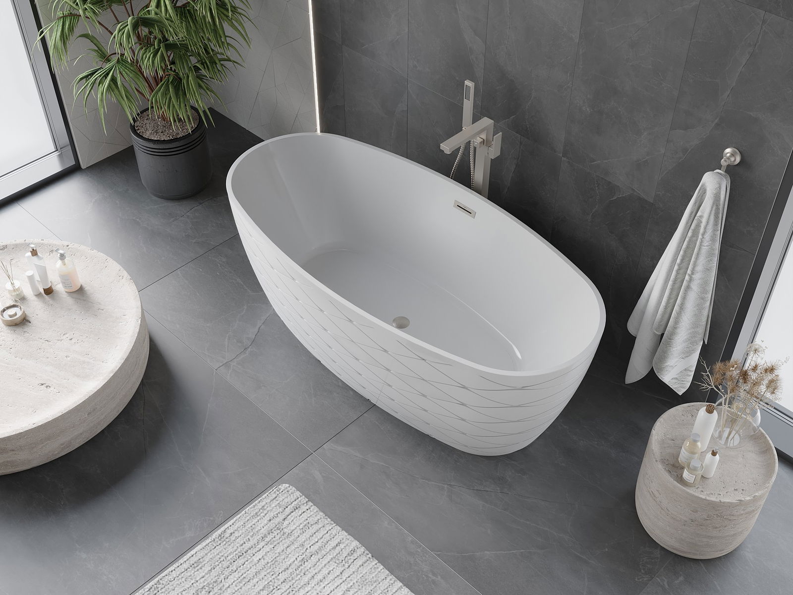 Jest to nowoczesny materiał łączący elegancki wygląd z wysoką trwałością. Jest odporny na uszkodzenia mechaniczne, łatwy w czyszczeniu i przyjemny w dotyku. Transparentna forma oraz cienki rant wanny nadaje jej lekkości i unikalnego charakteru, tworząc efektowny akcent w aranżacji łazienki.