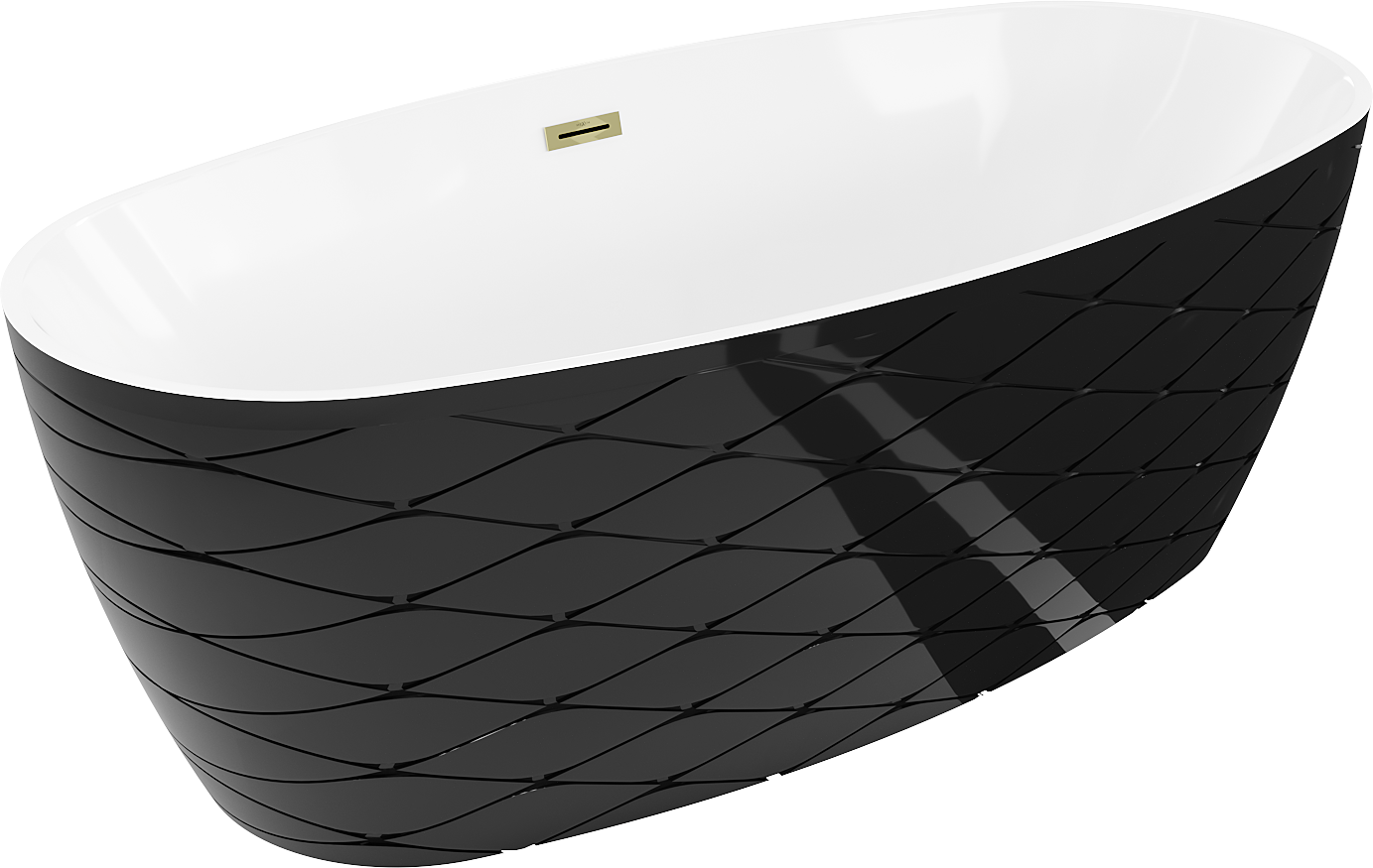 Specyfikacja produktu: Rozmiar: 170 x 80 cm Wysokość: 59 cm Głębokość: 45 cm Montaż: Wolnostojąca Materiał: Akryl sanitarny Kolor: Biały/Czarny Wykończenie: Złoty Struktura: Wzór Otwór przelewowy. Tak Otwór na baterie: Nie W komplecie syfon oraz korek klik klak Odporność na matowienie i promienie uv