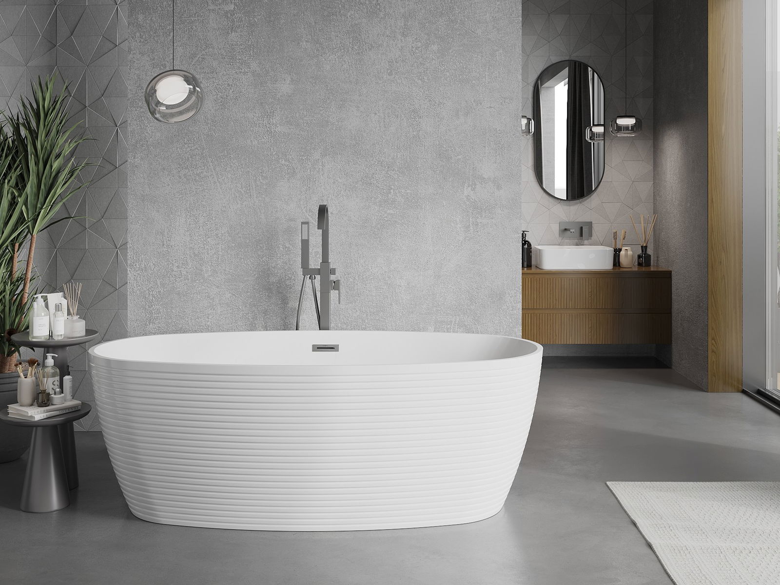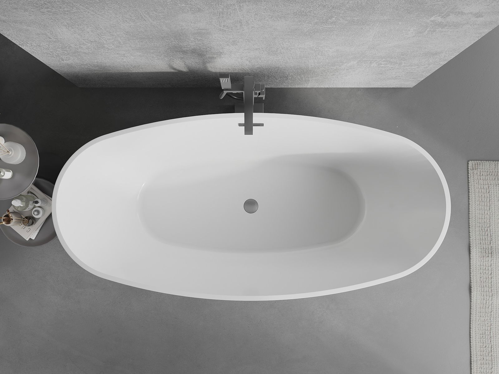 Jest to nowoczesny materiał łączący elegancki wygląd z wysoką trwałością. Jest odporny na uszkodzenia mechaniczne, łatwy w czyszczeniu i przyjemny w dotyku. Transparentna forma oraz cienki rant wanny nadaje jej lekkości i unikalnego charakteru, tworząc efektowny akcent w aranżacji łazienki.