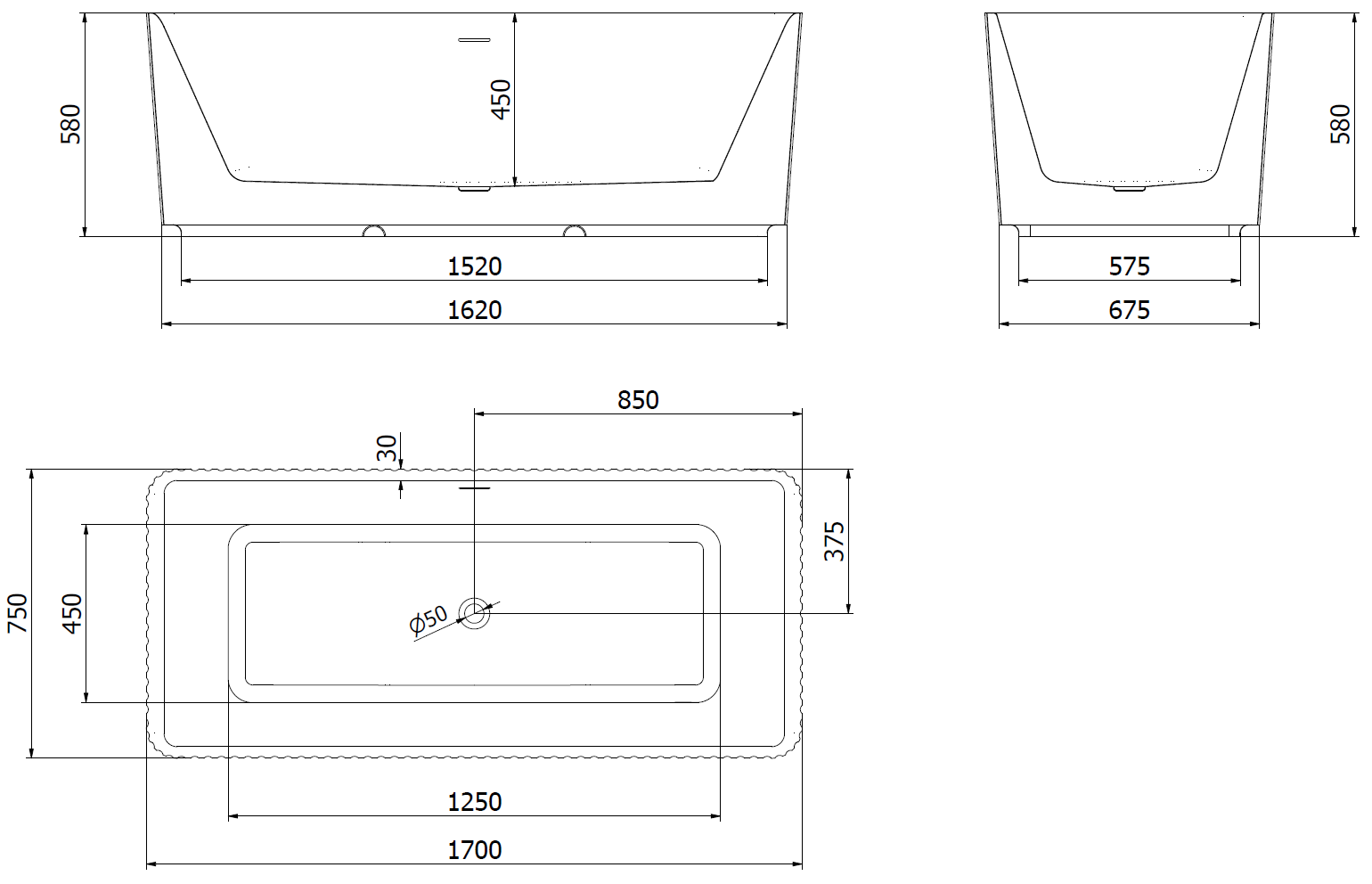 Specyfikacja produktu: Rozmiar: 170 x 75 cm Wysokość: 58 cm Głębokość: 45 cm Montaż: Wolnostojąca Materiał: Akryl sanitarny Kolor: Biały Wykończenie: Biały Struktura: Ryflowana Otwór przelewowy. Tak Otwór na baterie: Nie W komplecie syfon oraz korek klik klak Odporność na matowienie i promienie uv