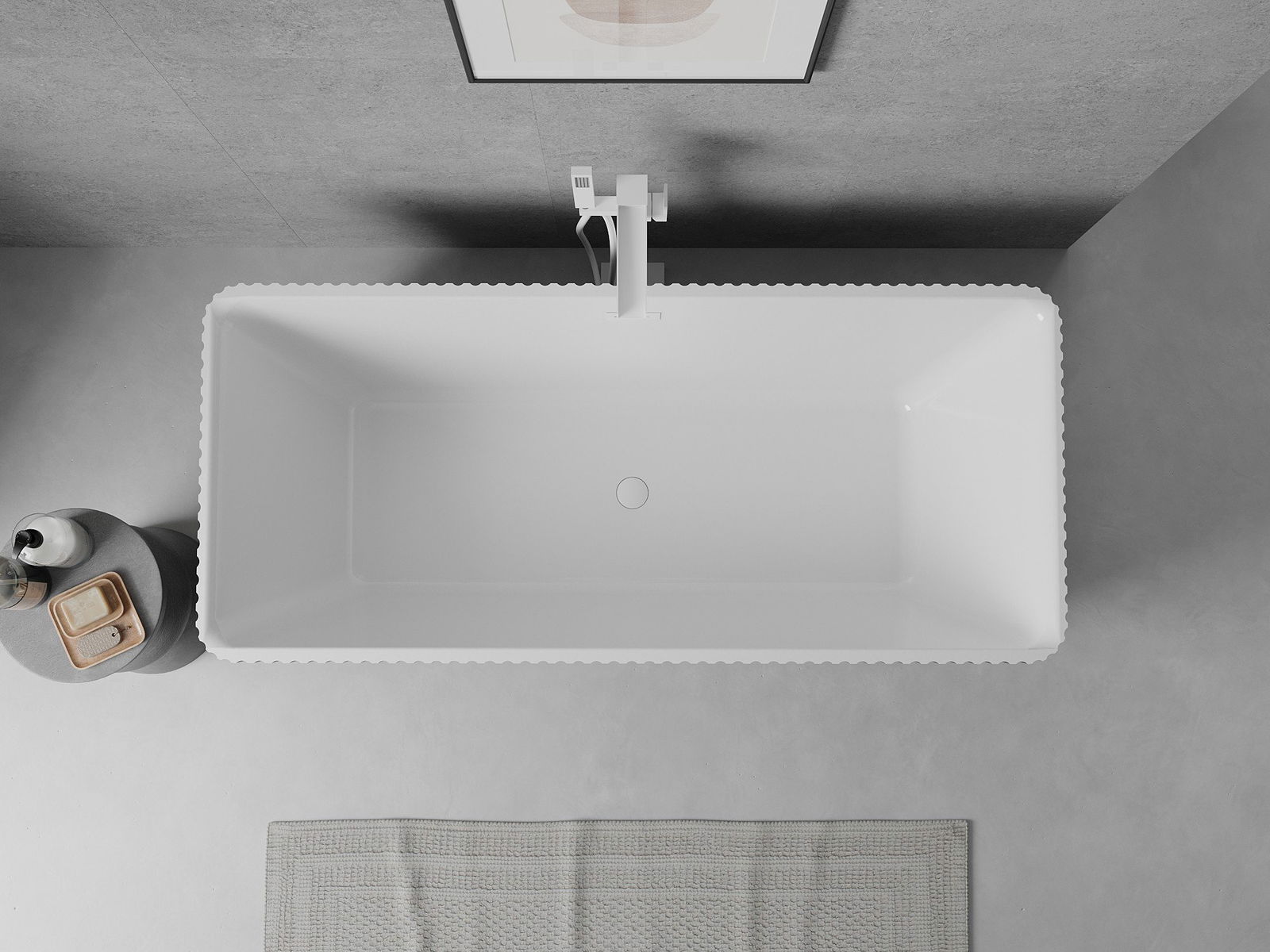 Jest to nowoczesny materiał łączący elegancki wygląd z wysoką trwałością. Jest odporny na uszkodzenia mechaniczne, łatwy w czyszczeniu i przyjemny w dotyku. Transparentna forma oraz cienki rant wanny nadaje jej lekkości i unikalnego charakteru, tworząc efektowny akcent w aranżacji łazienki.