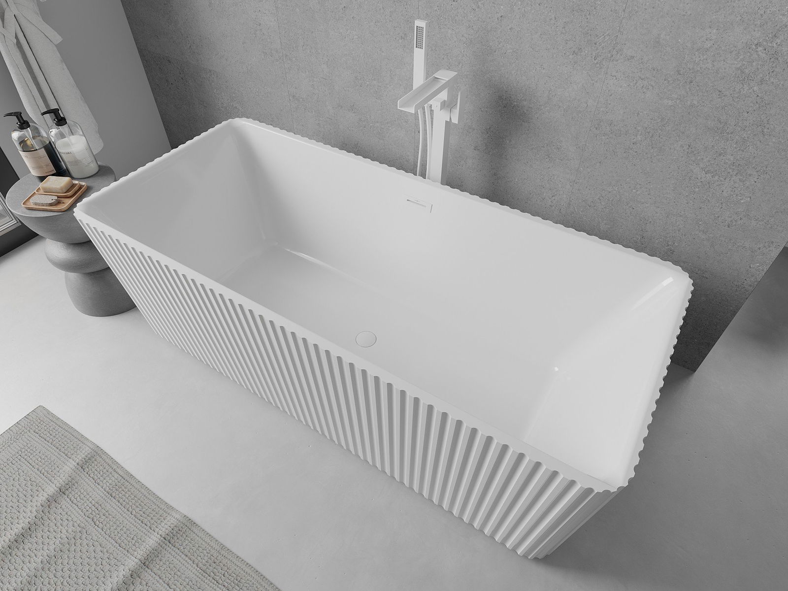 • Mexen Nila wanna wolnostojąca ryflowana 170 x 75 cm, biała, przelew biały - 52841708000-20