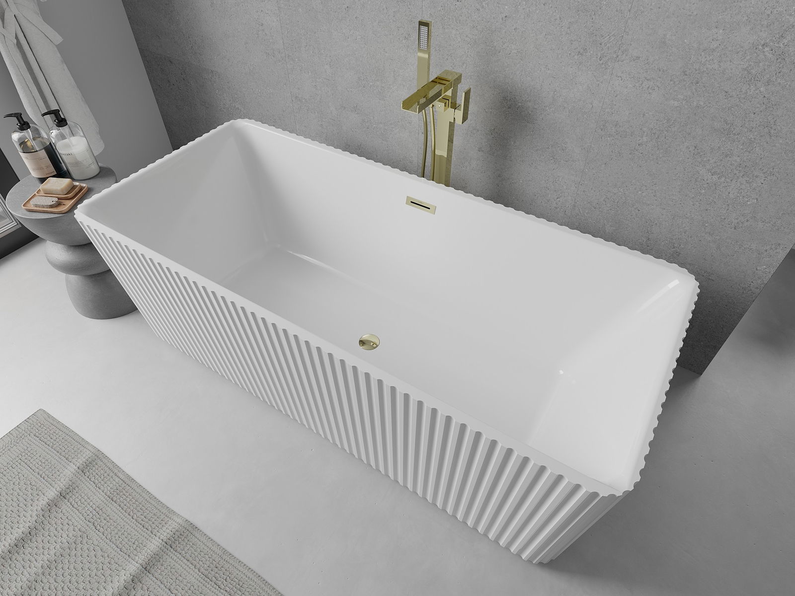 • Mexen Nila wanna wolnostojąca ryflowana 170 x 75 cm, biała, przelew złoty - 52841708000-50