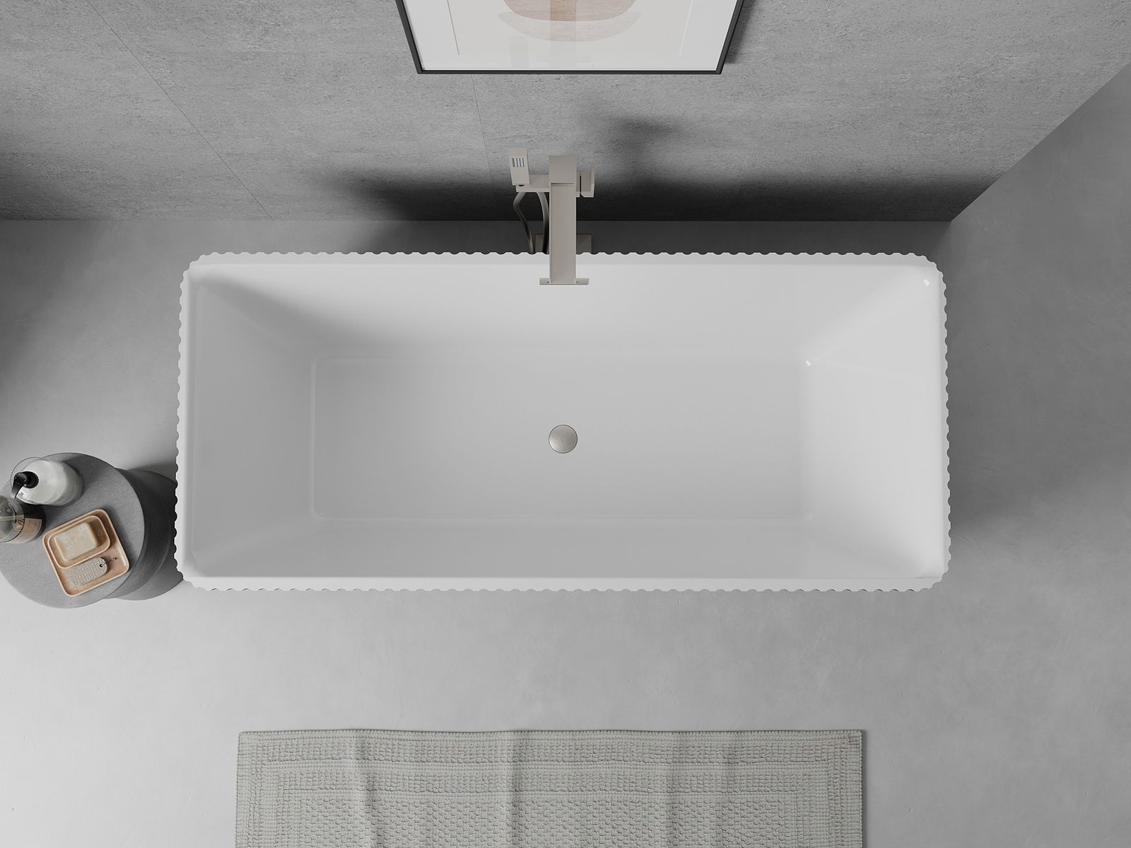 • Mexen Nila wanna wolnostojąca ryflowana 170 x 75 cm, biała, przelew nikiel szczotkowany - 52841708000-97