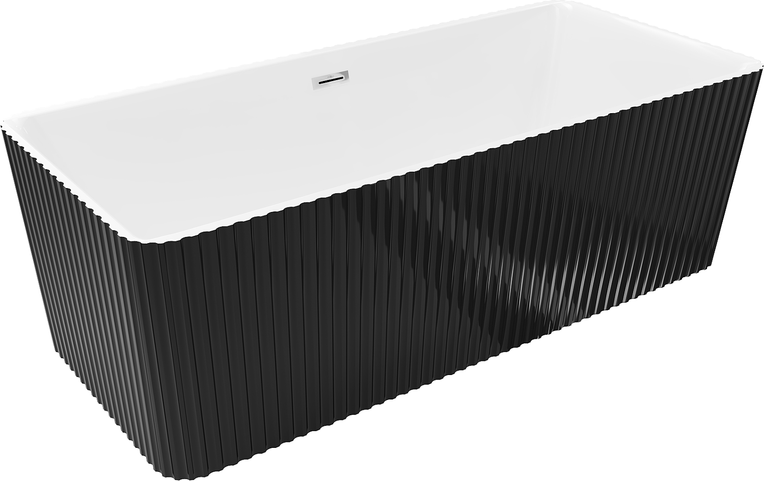 Specyfikacja produktu: Rozmiar: 170 x 75 cm Wysokość: 58 cm Głębokość: 45 cm Montaż: Wolnostojąca Materiał: Akryl sanitarny Kolor: Biały/Czarny Wykończenie: Chrom Struktura: Ryflowana Otwór przelewowy. Tak Otwór na baterie: Nie W komplecie syfon oraz korek klik klak Odporność na matowienie i promienie uv