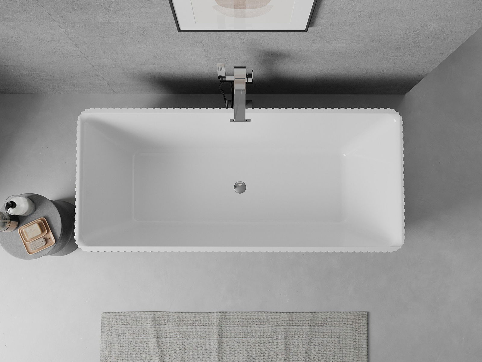 • Mexen Nila wanna wolnostojąca ryflowana 170 x 75 cm, biała/czarna, przelew chrom - 52841708075-01